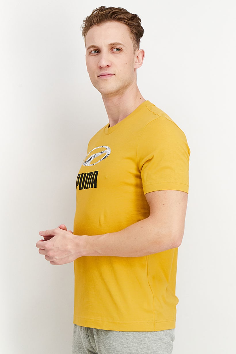 Mustard Men’s Short Sleeve Graphic Print Training T-shirt for Sportswear.