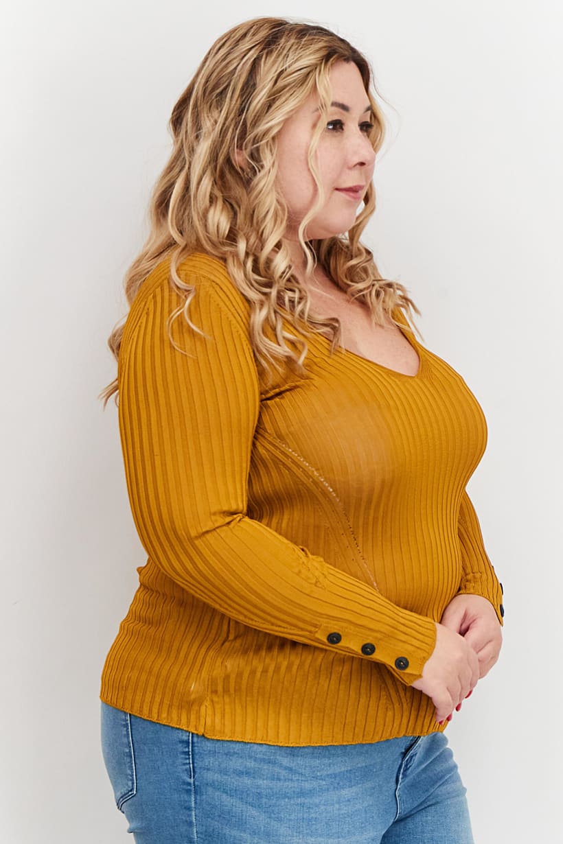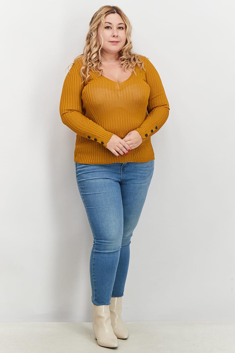 | nameOriginal | Women V-neck Long Sleeve Pleated Top, Mustard |