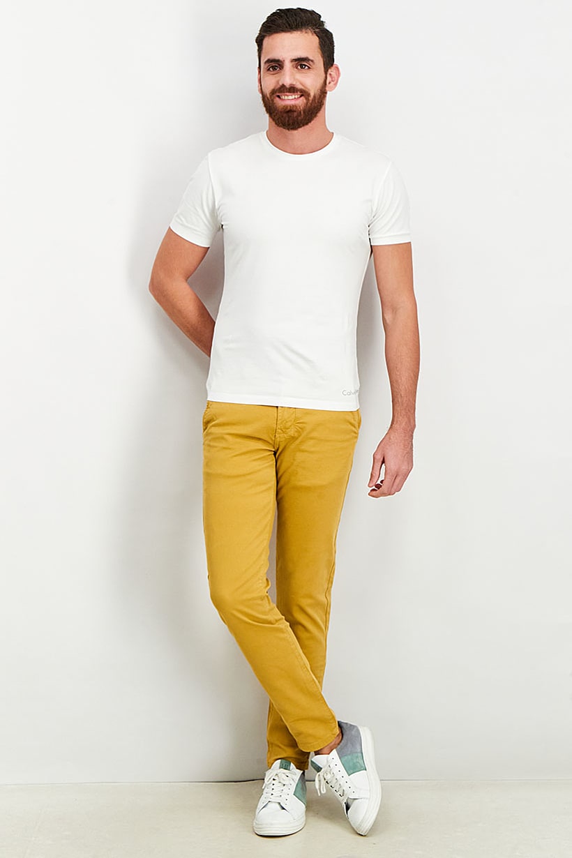 | sub_Categories | Men Clothing, Pants, men slim fit solid chino pants mustard |