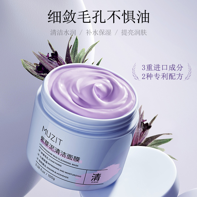 Muzitian purple grass mud cleaning mask deep cleaning improve blackhead acne closed mouth coating mask skin care products