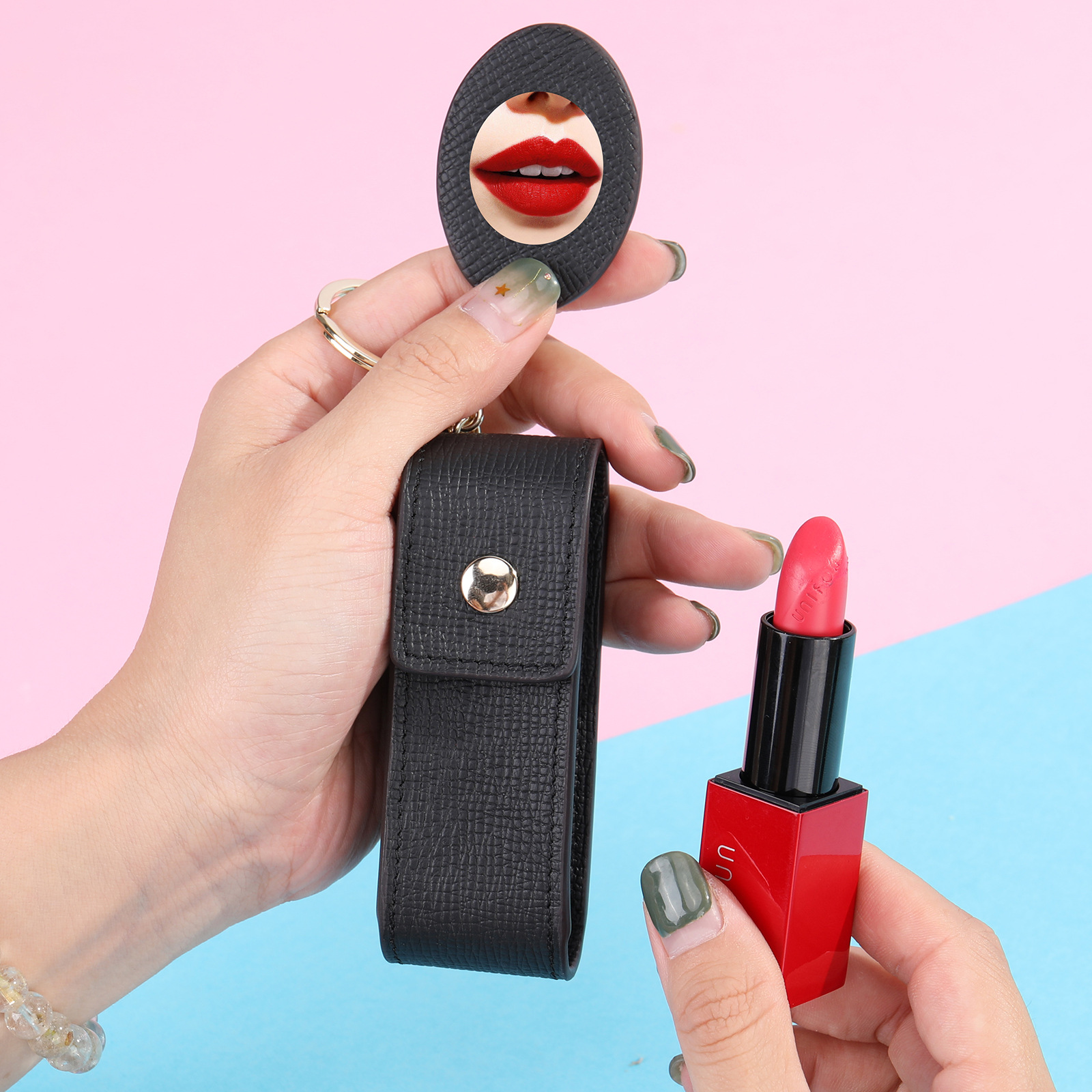 | nameOriginal | MVA New Fashion Genuine Leather Red Envelope Makeup with Mirror Lipstick Storage Bag Small Lipstick Small Bag Protective Cover |