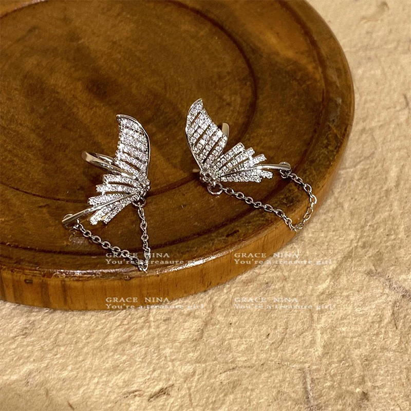 | nameOriginal | My fairy! Flash diamond butterfly ear cuff without piercing, women's high-end light luxury earrings, elegant elf earrings |