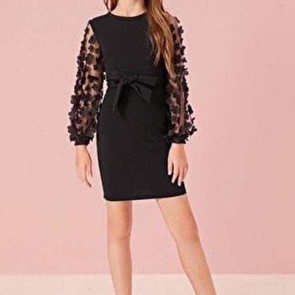 Tie Waist Tulle Detailed Kids Dress