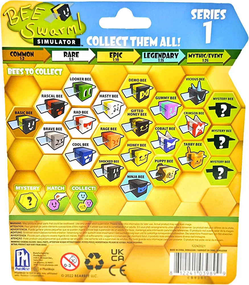 | nameOriginal | Bee Swarm Simulator – Mystery Bee Starter Pack (Three 1" Minifigures & Honeycomb Cases, Series 1) |