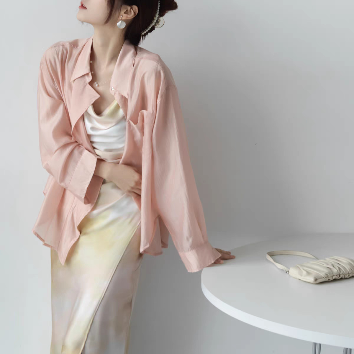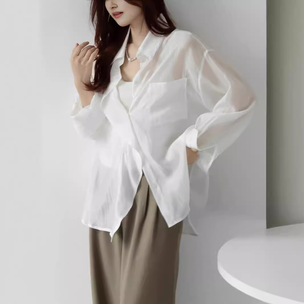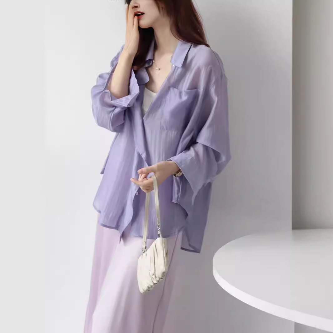 MZOMXO High-grade Heavy-weight Soft Tencel Long-sleeved Shirt Women's Spring and Summer Casual Loose Sunscreen Shirt Jacket