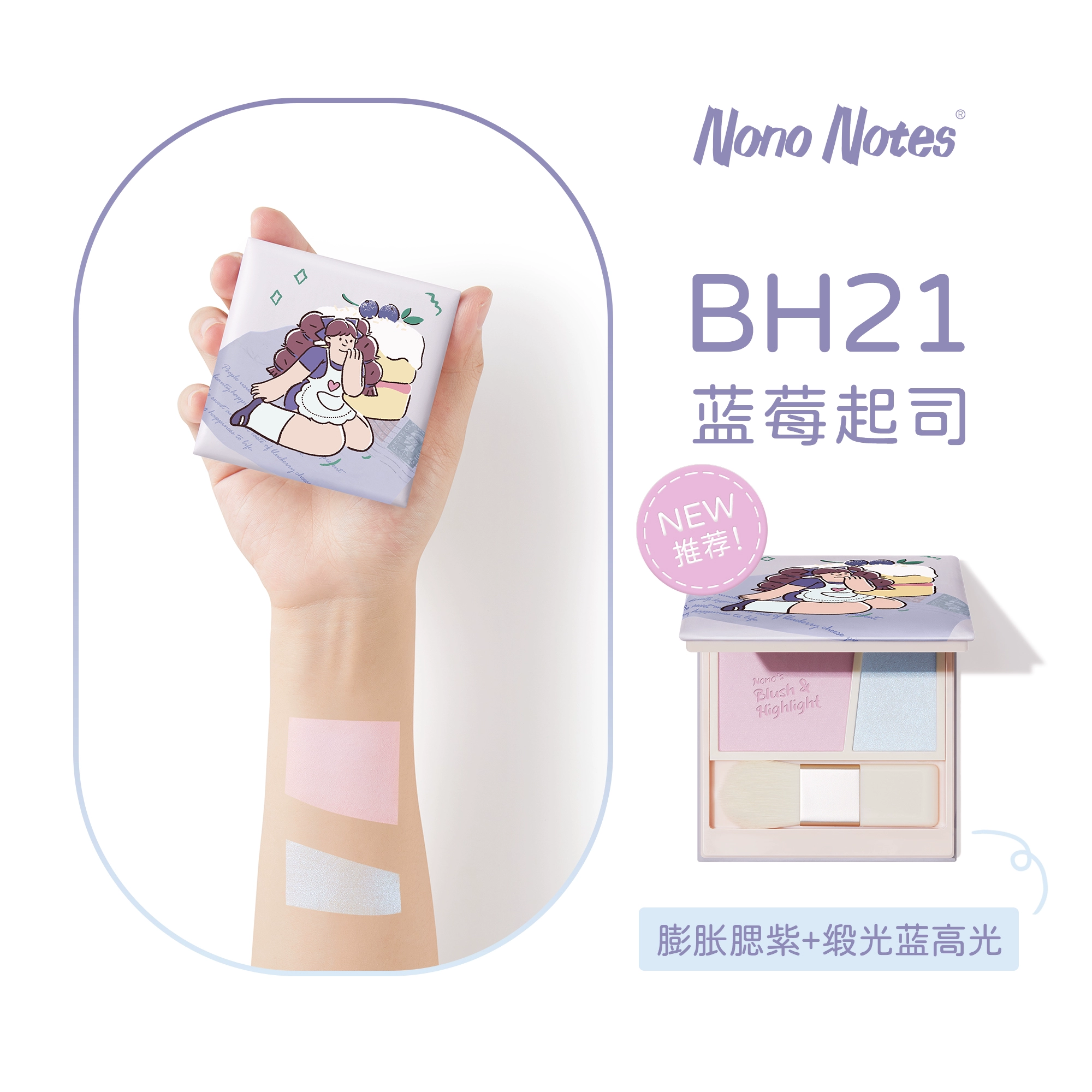 Naijizi Blush Highlight All-in-one Palette Blush Blue Blush Purple Two-color Contouring Nude Makeup Sunburning Women’s Blush Naiji Machine