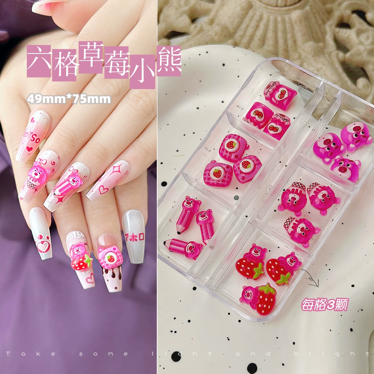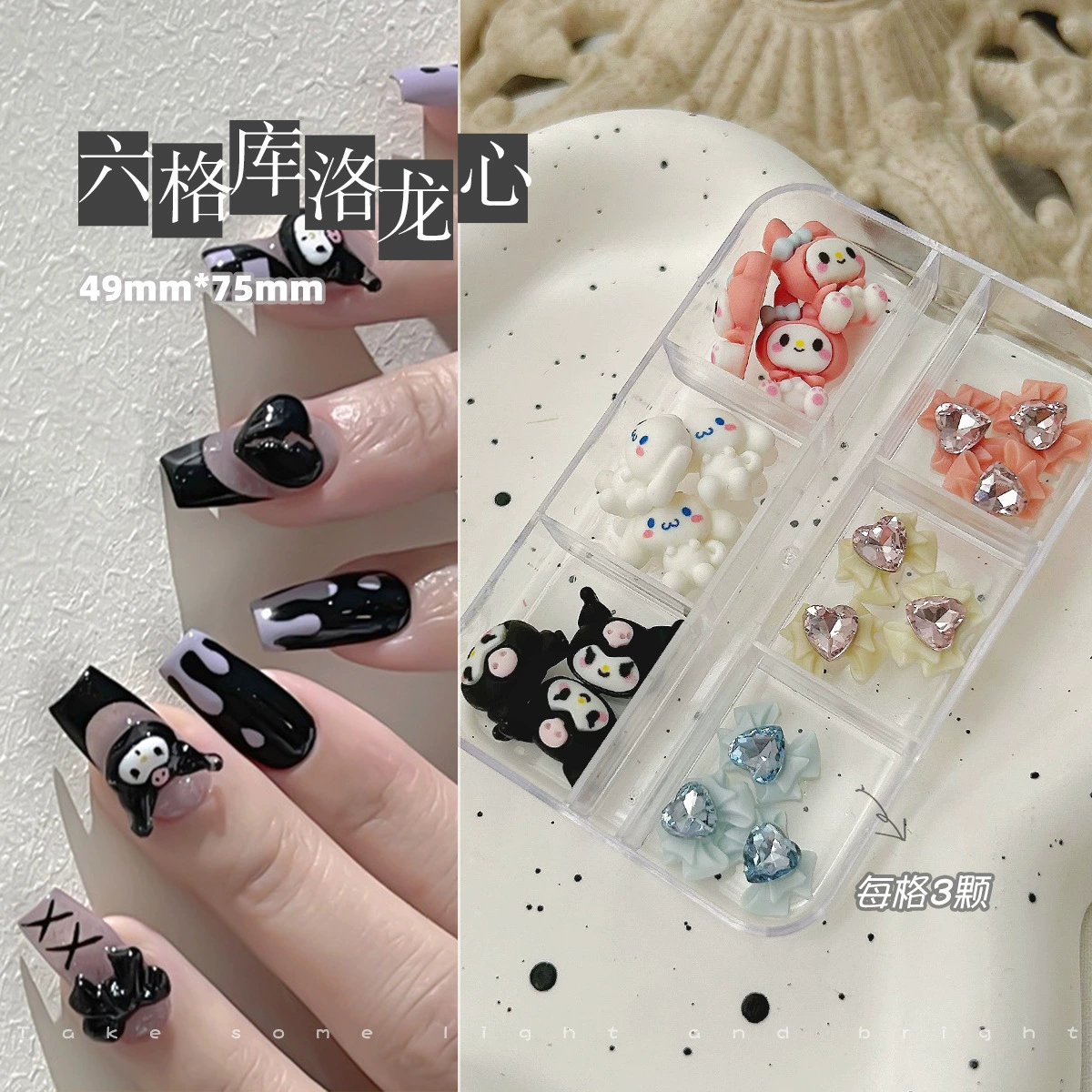 | nameOriginal | Nail art accessories cartoon resin dopamine strawberry bear Melody cinnamon dog Kurome cute nail decoration |