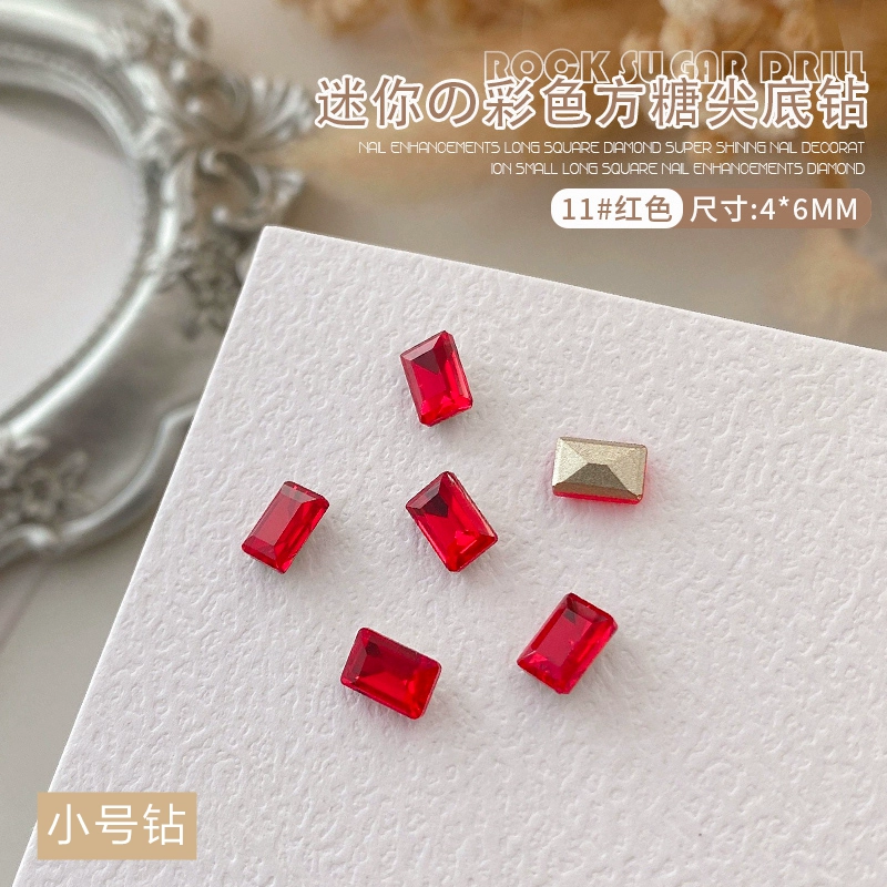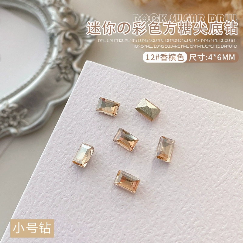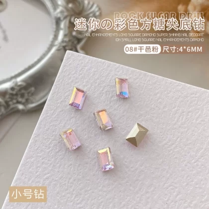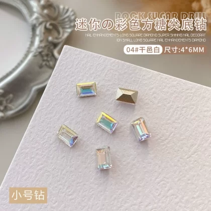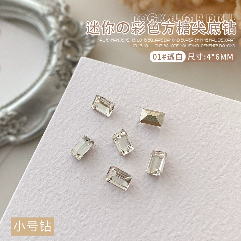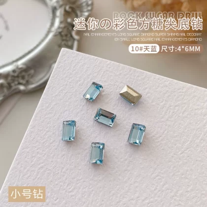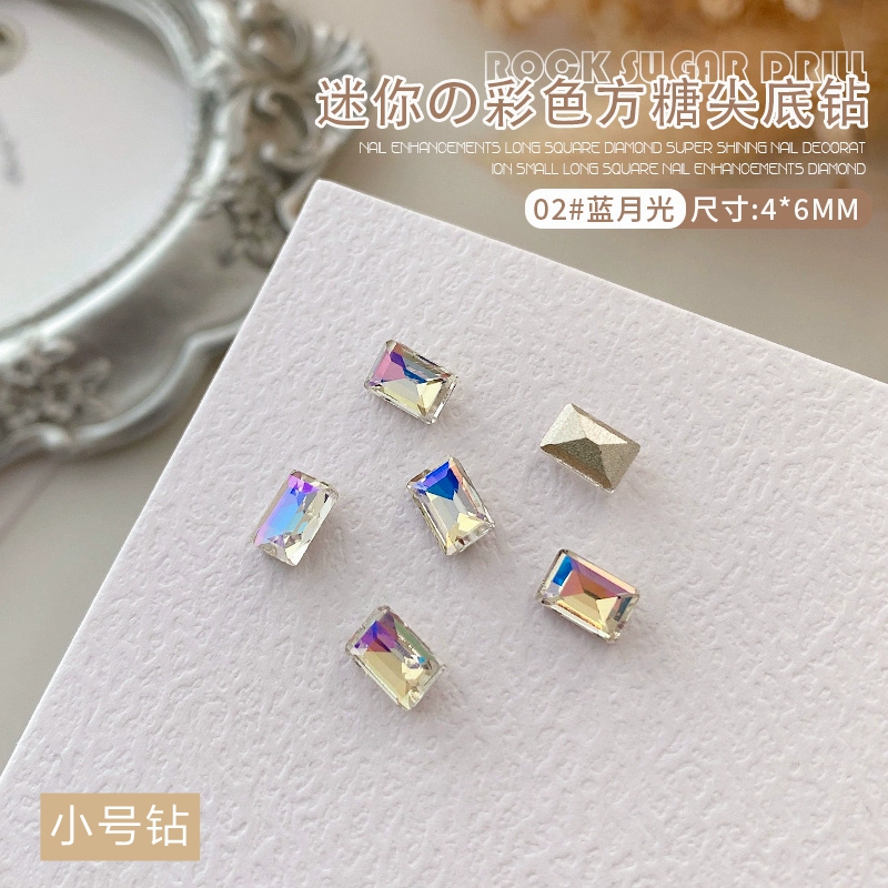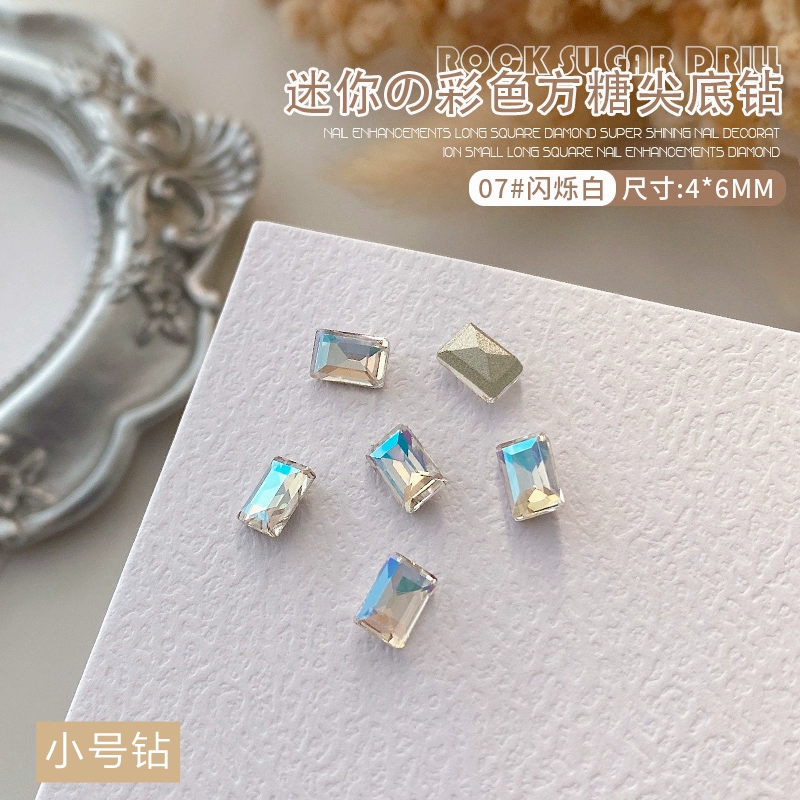 Nail art jewelry small sugar cube crystal glass pointed bottom diamond internet celebrity small rock sugar rectangular right angle nail diamond accessories multi-color