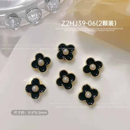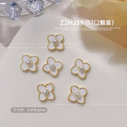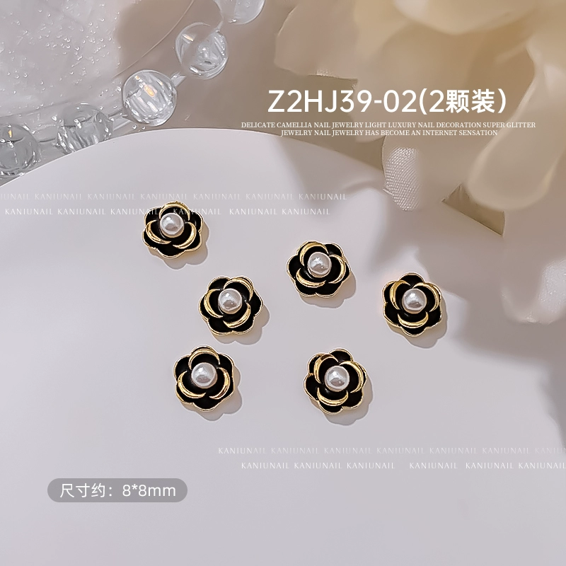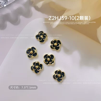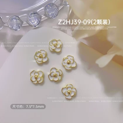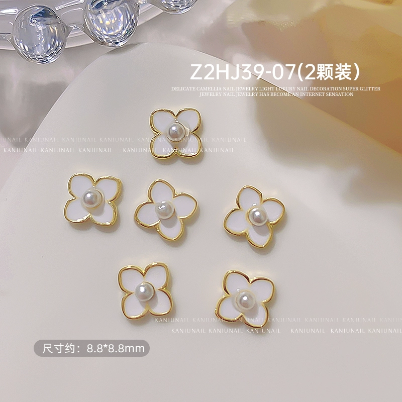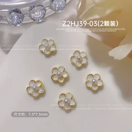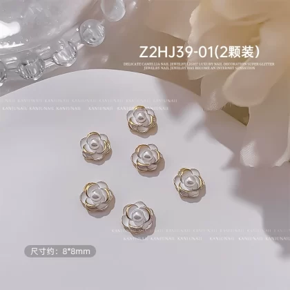 Nail Art Accessories Super Flash Metal Camellia Nail Decoration Pearl Patch Small Accessories Finished Patch 2024 New Style