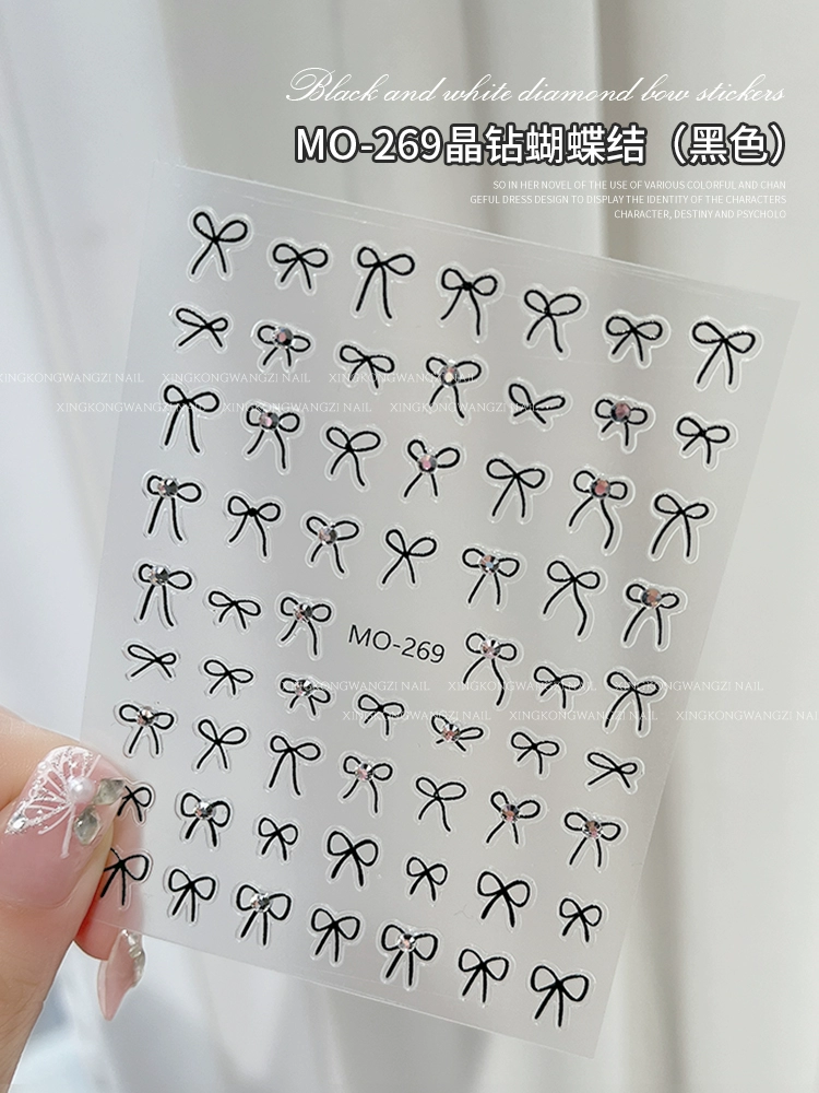 | nameOriginal | Nail art bow sticker with crystal diamond black and white bow tie silk cute Japanese decal nail patch diy decoration |