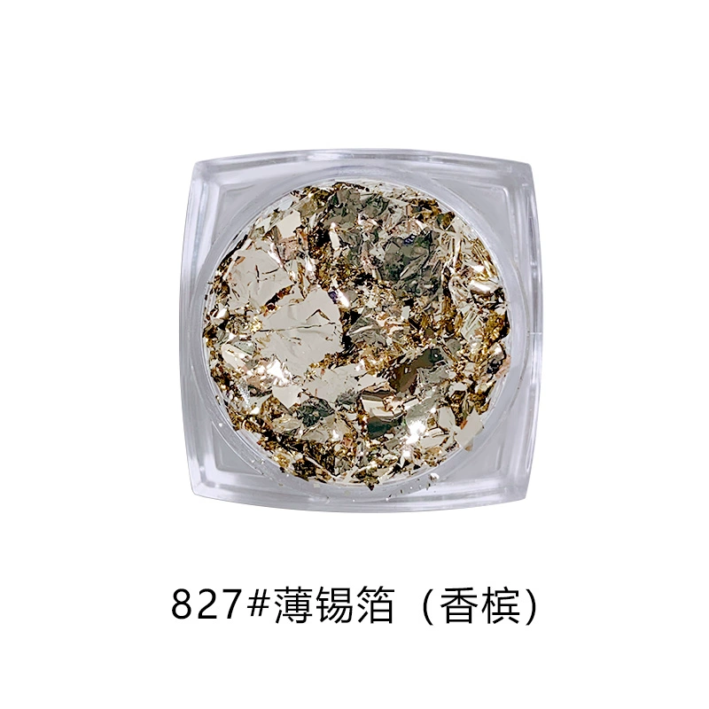 | nameOriginal | Nail art champagne light gold foil powder super bright new internet celebrity gold and silver foil foil fragments nail decoration love stickers |