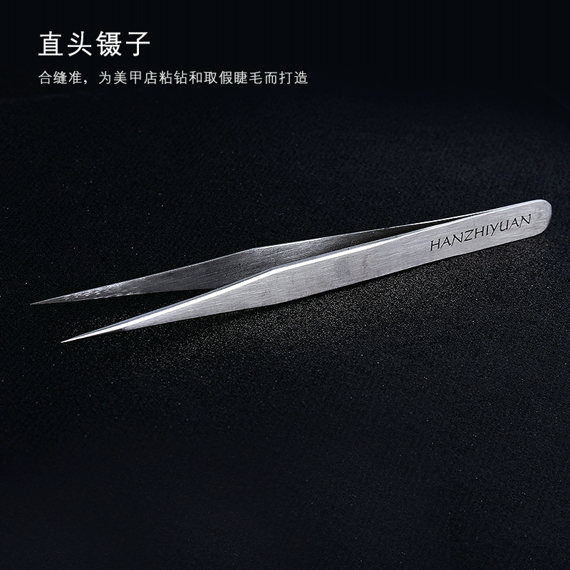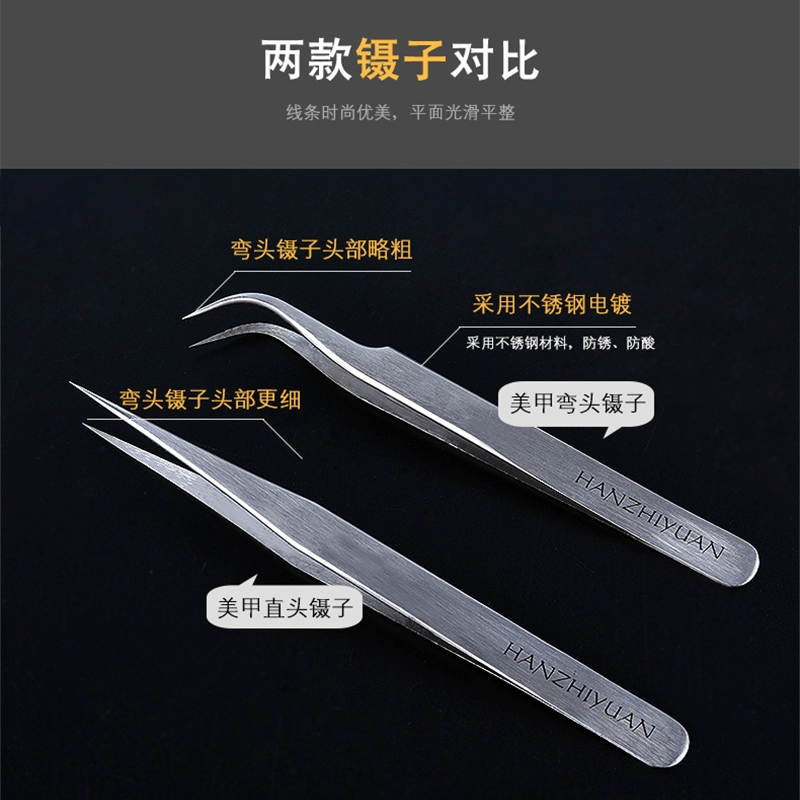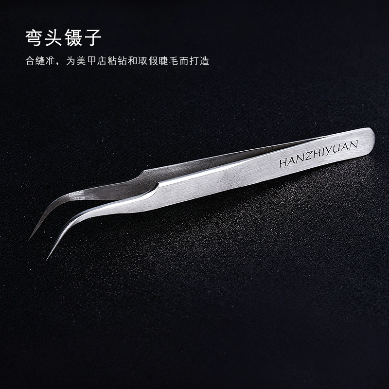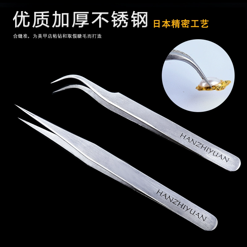 Nail art high-precision stainless steel tweezers straight elbow elbow clip diamond nail jewelry grafting false eyelashes pointed tweezers