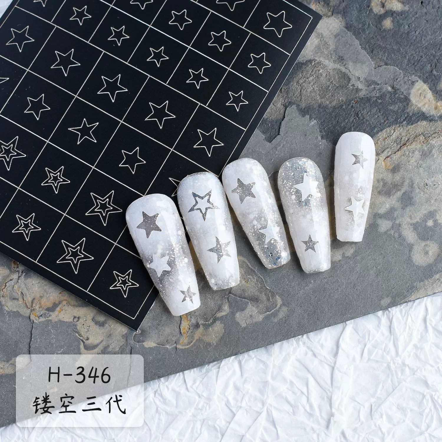 | nameOriginal | Nail art hollow spray-painted stickers pat and bloom butterfly five-pointed star love flame auxiliary nail sticker small pattern |