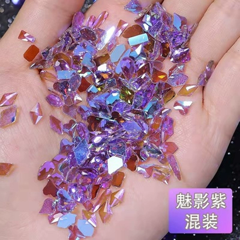 Nail Art Internet Celebrity Hot Style Warm Elf Aurora Diamond Champagne Phantom Flat Bottom Special Shaped Diamond 2022 New Nail Accessories