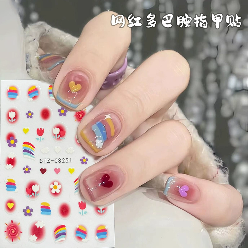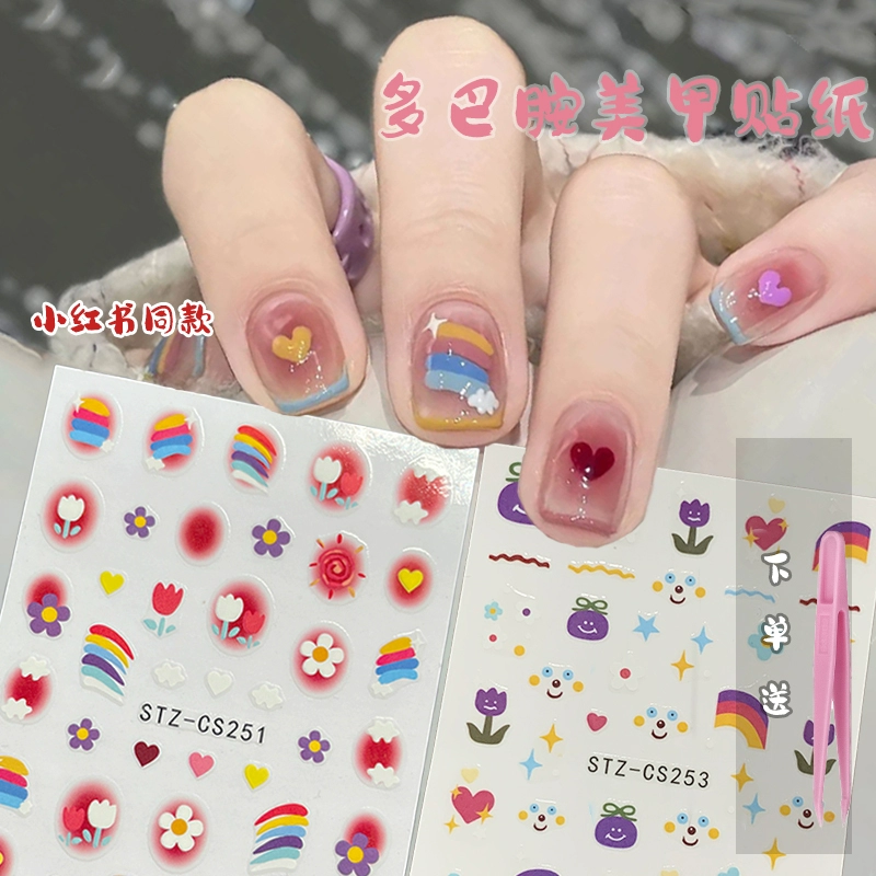 | nameOriginal | Nail Art Internet Celebrity Popular Summer Little Rainbow Cute Cartoon Dopamine Sticker 2024 New Nail Decal Jewelry |