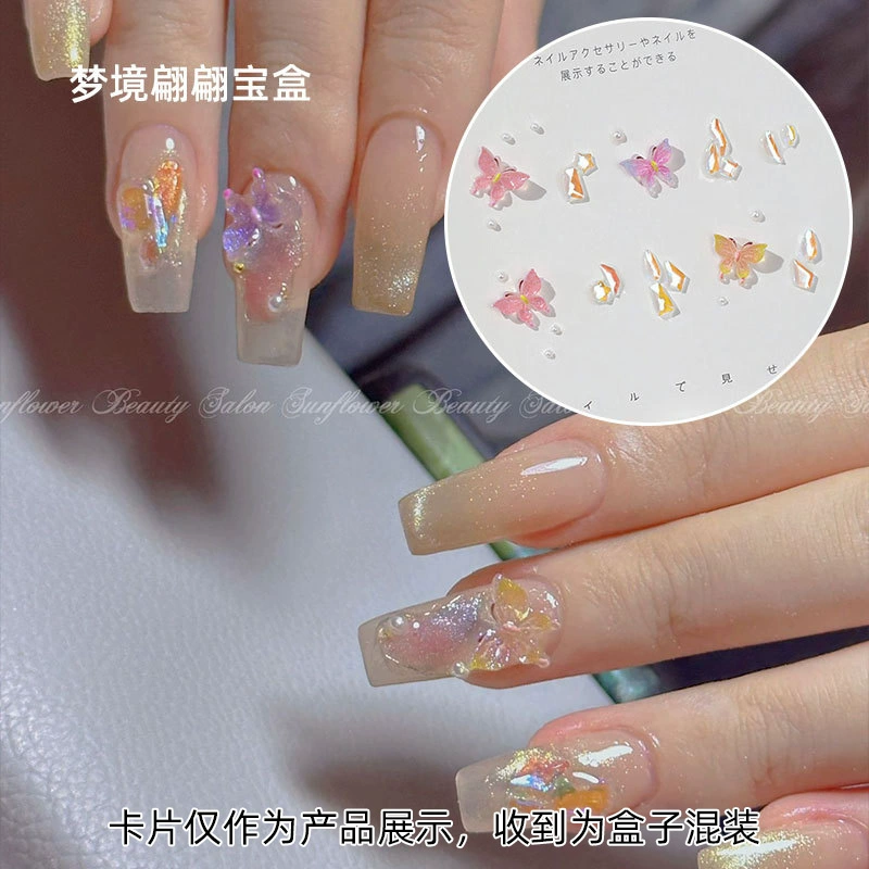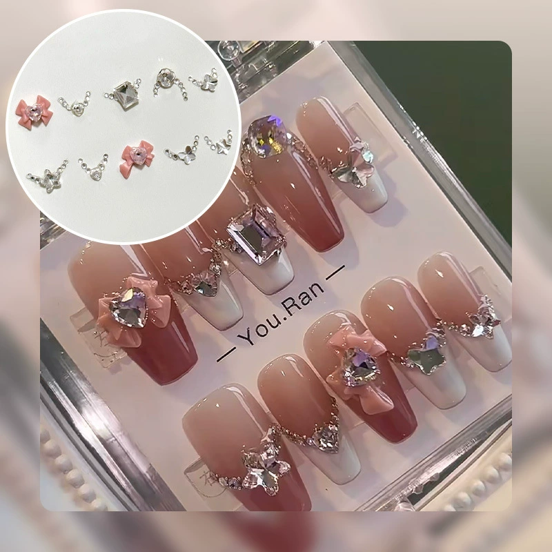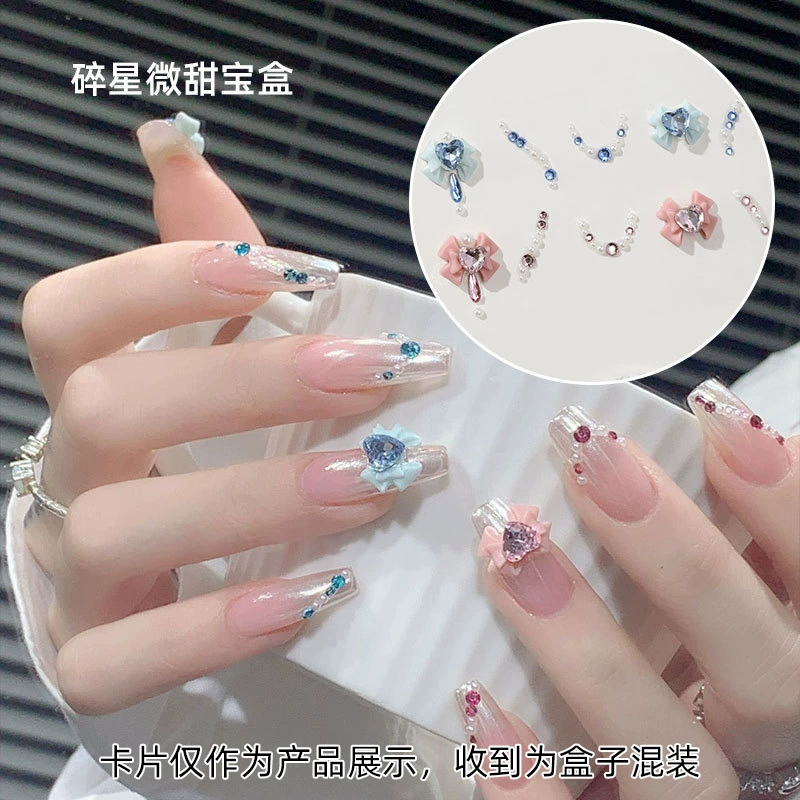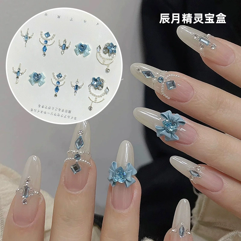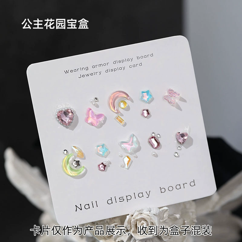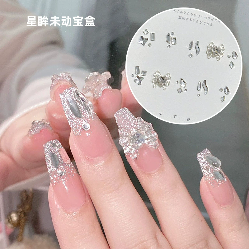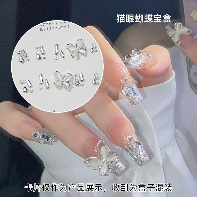 Nail art jewelry Internet celebrity same style flat bottom special-shaped diamond small steel ball nail diamond jewelry love pointy bottom butterfly elf