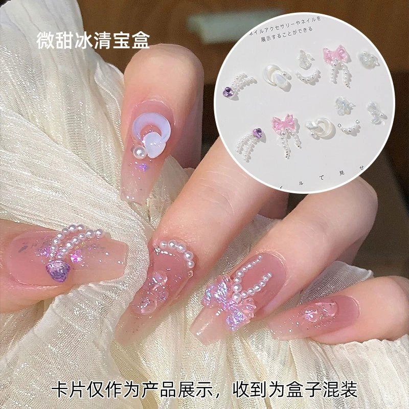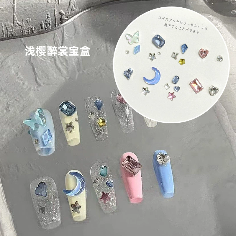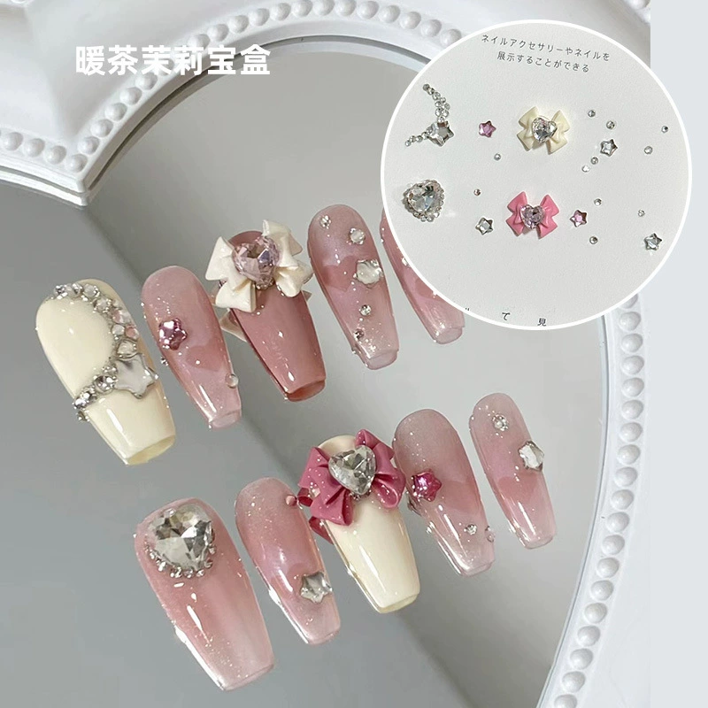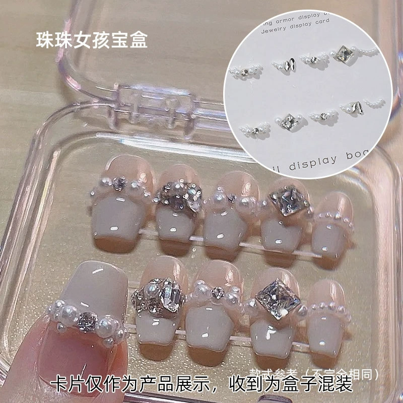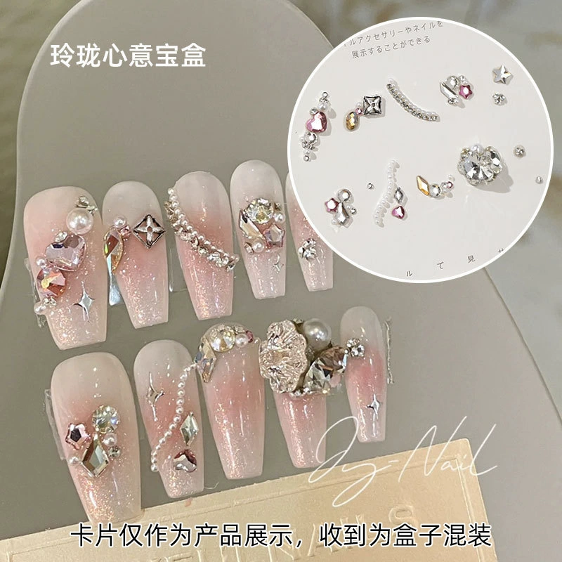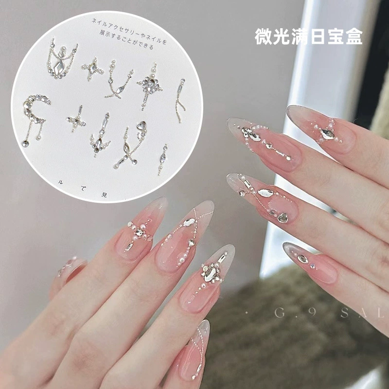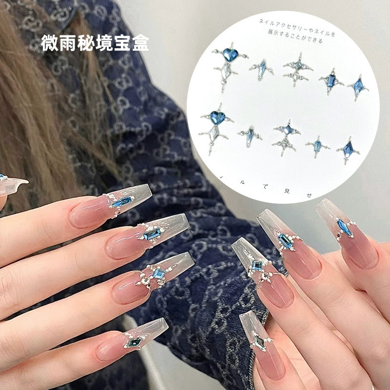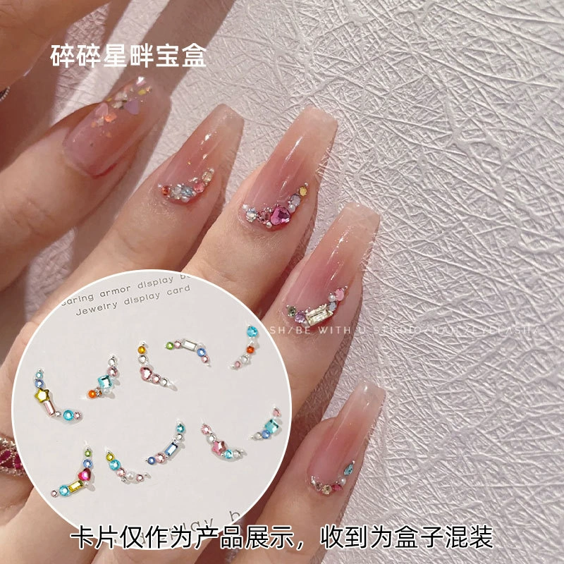 Nail art jewelry Internet celebrity same style flat bottom special-shaped diamond small steel ball nail diamond jewelry love pointy bottom butterfly elf