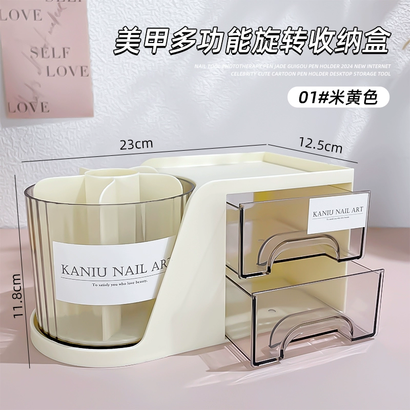 | nameOriginal | Nail art large-capacity pen holder storage box rotatable light luxury high-end desktop phototherapy pen storage drawer organizer |