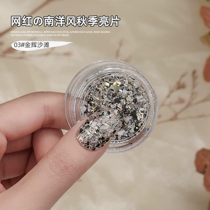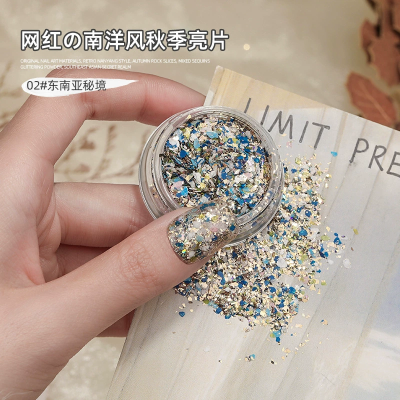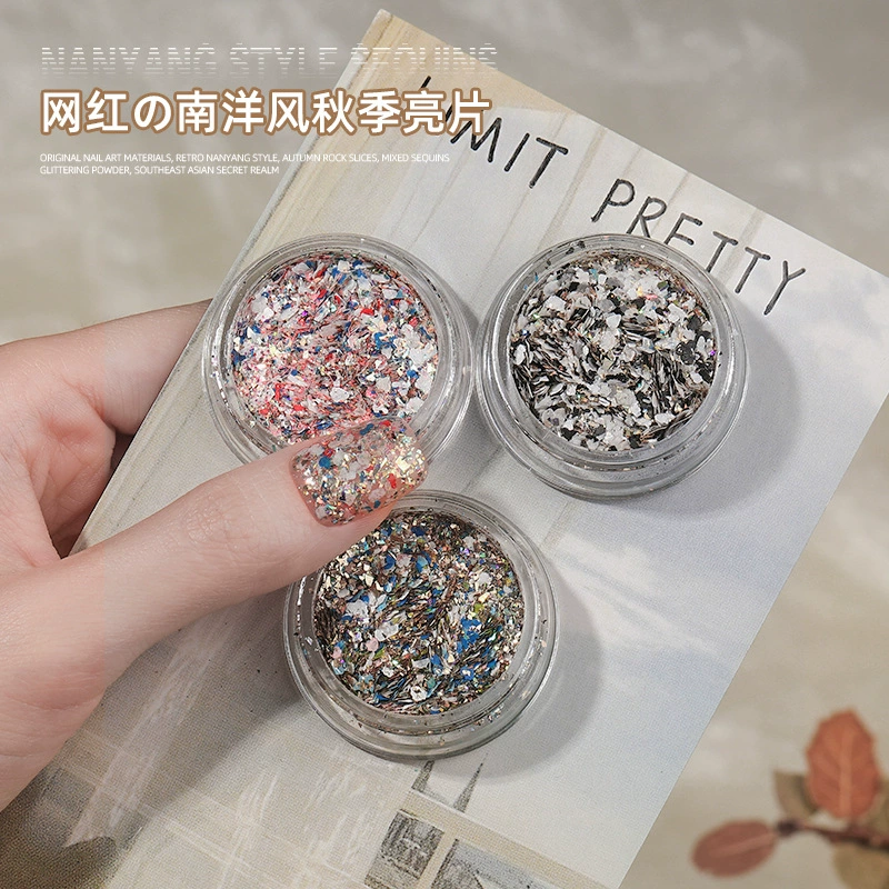 | nameOriginal | Nail art material, retro Southeast Asian Nanyang style nail art jewelry, rock chips, mixed glitter, glitter nail decoration |