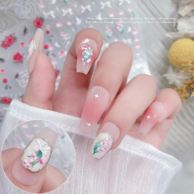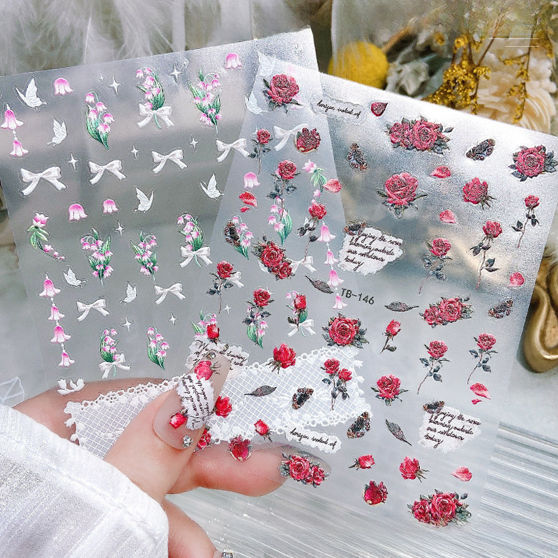 Nail Art Relief sticker rose retro adhesive 5D three-dimensional bow Tulip nail jewelry decal decoration