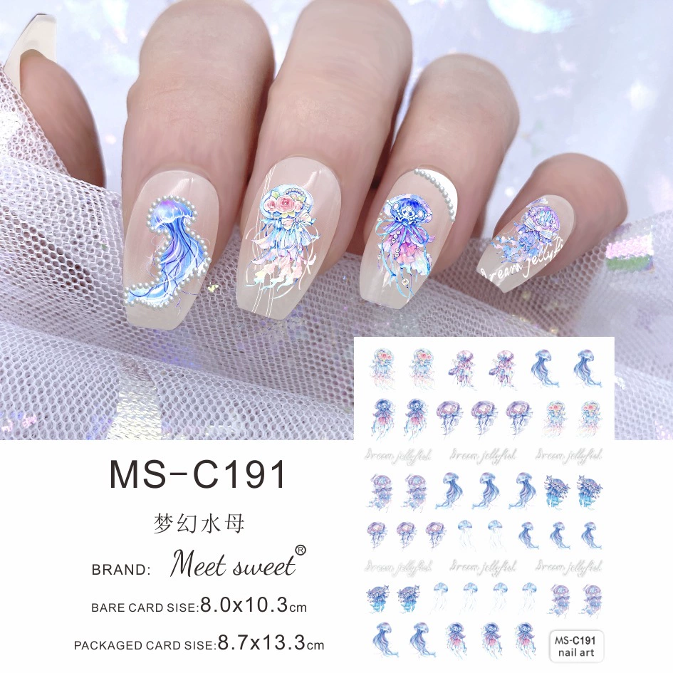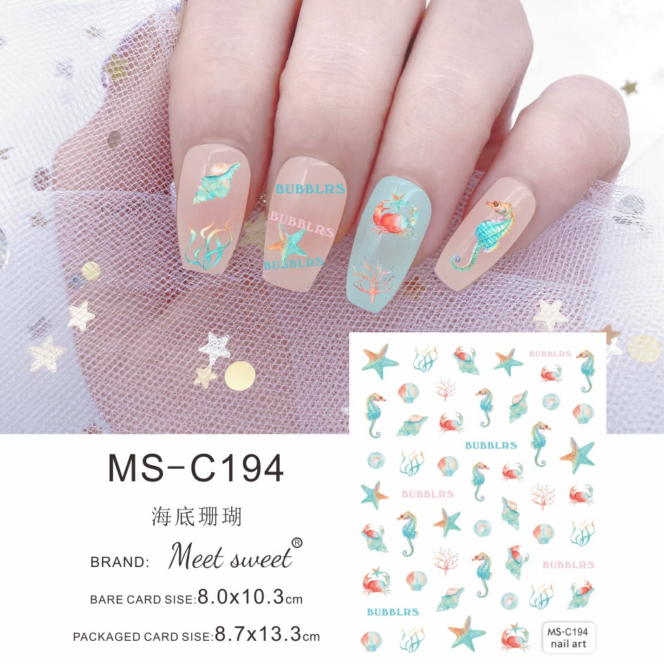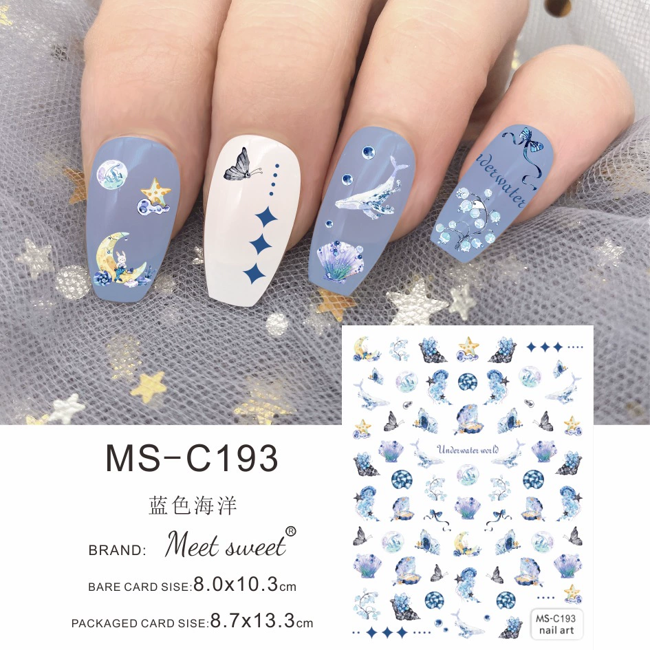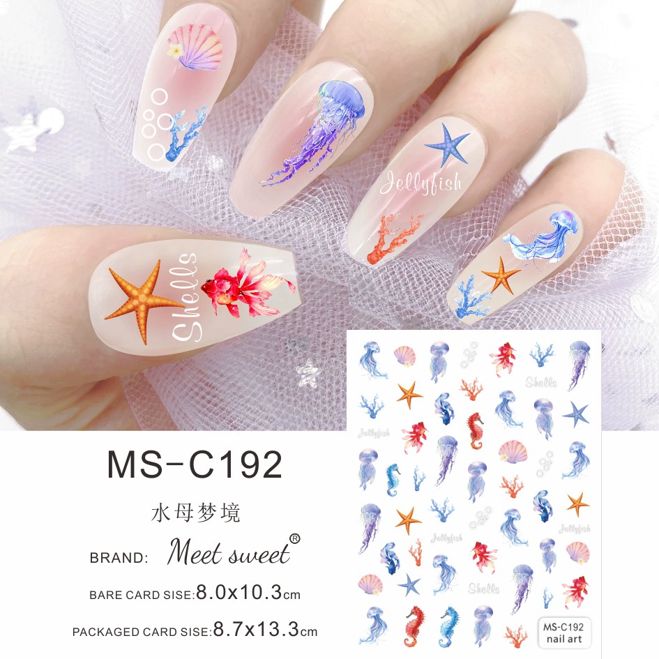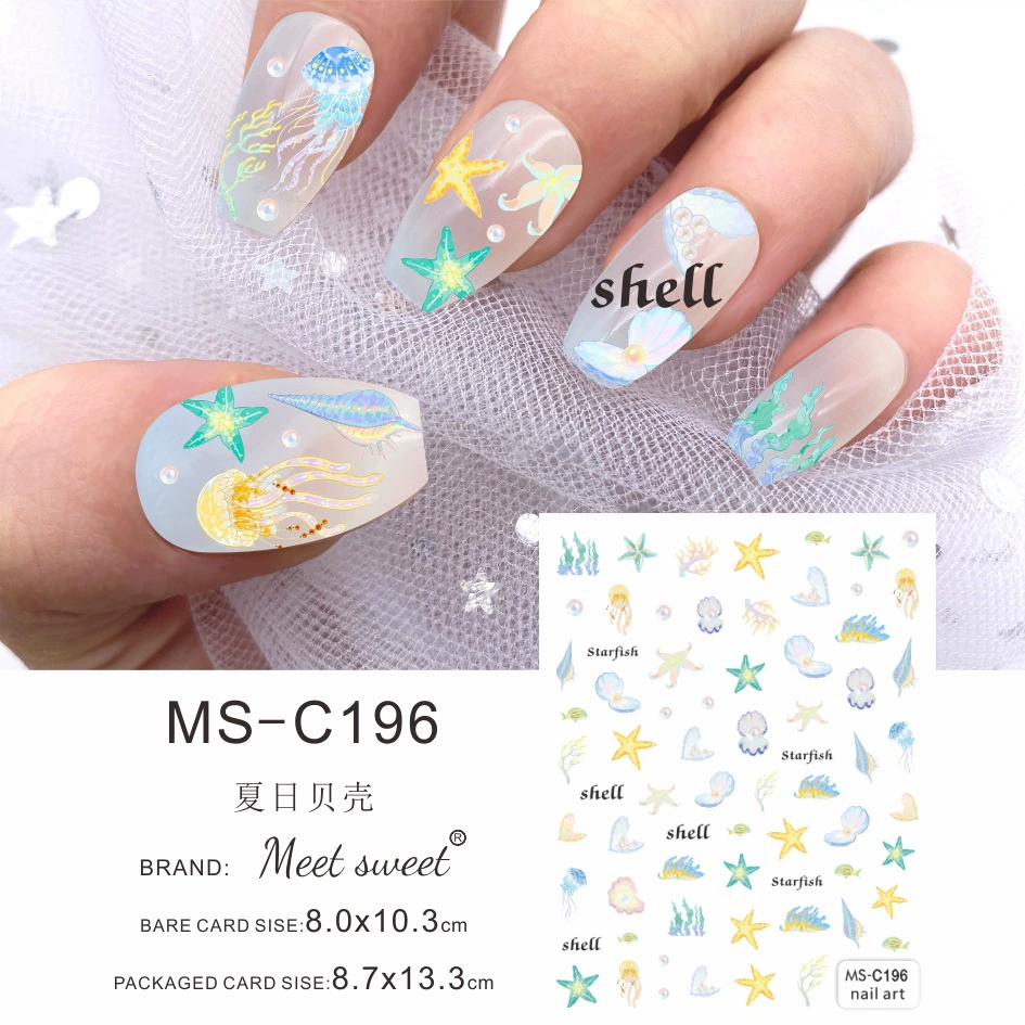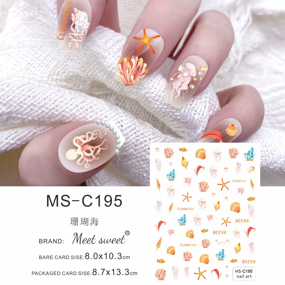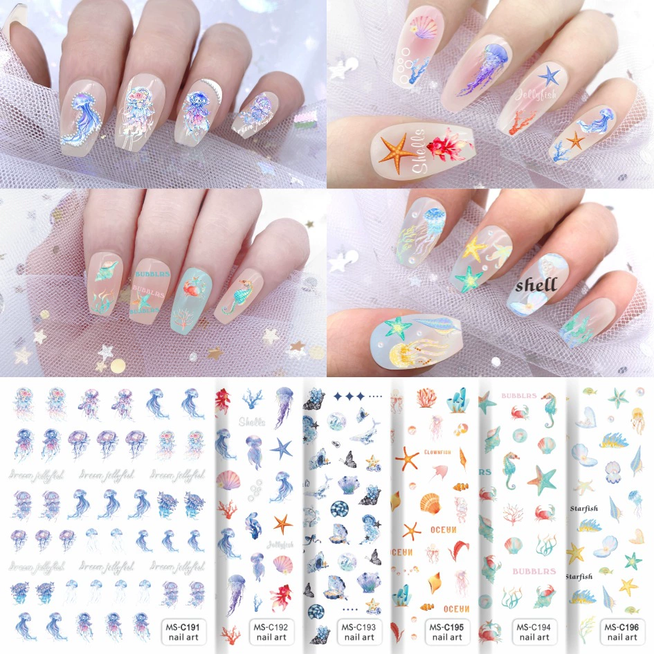 | nameOriginal | Nail art sticker summer ocean style blue jellyfish shell coral seahorse starfish nail decal cartoon |