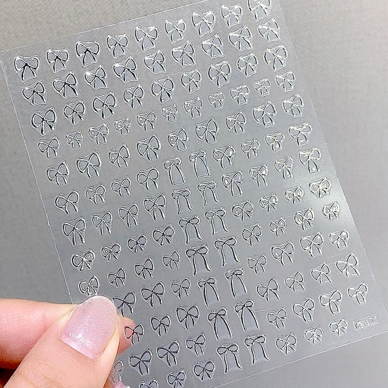 | nameOriginal | Nail Art Stickers 2024 New Internet Celebrity Popular Cute Bow Knot Nail Art Stickers Silver Three-dimensional Bow Stickers |