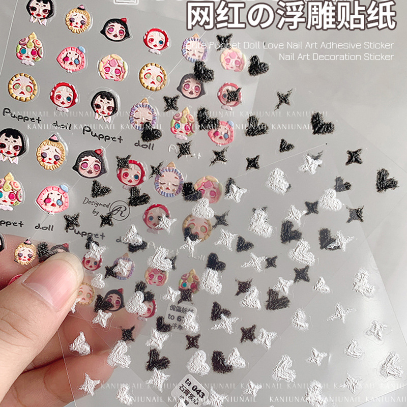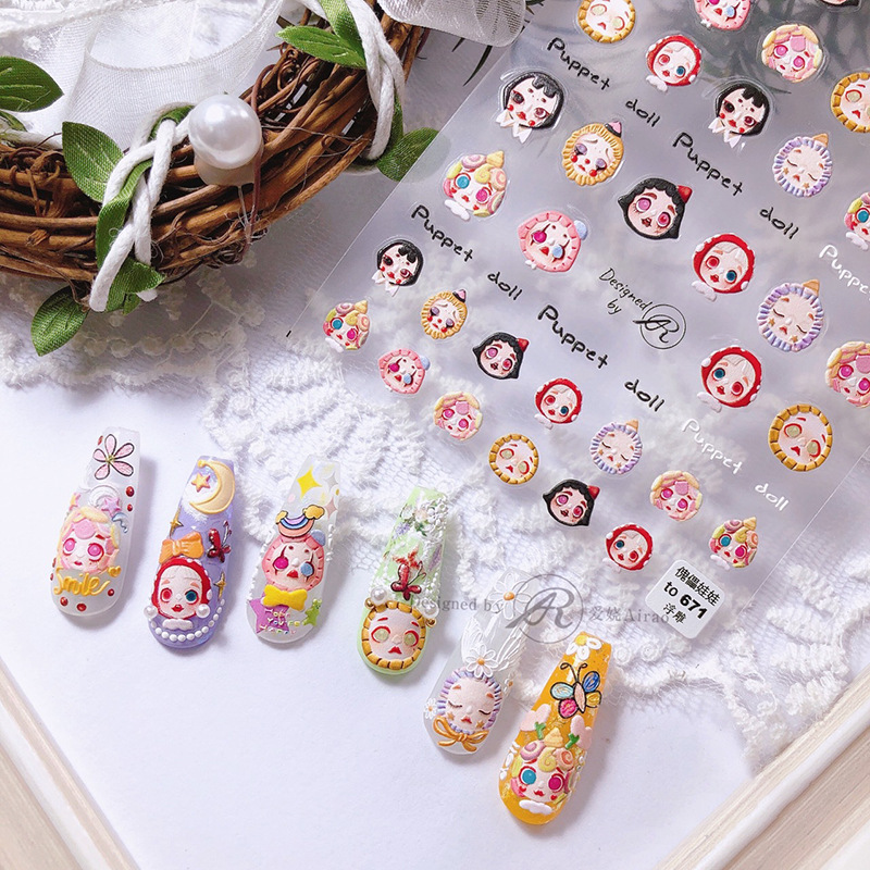 | nameOriginal | Nail Art Stickers Clown Puppet Doll Japanese Style Funny Dark Style New Embossed Love Small Pattern Nail Decal |