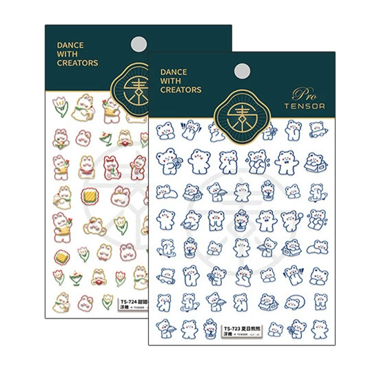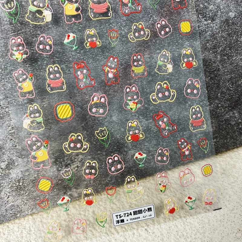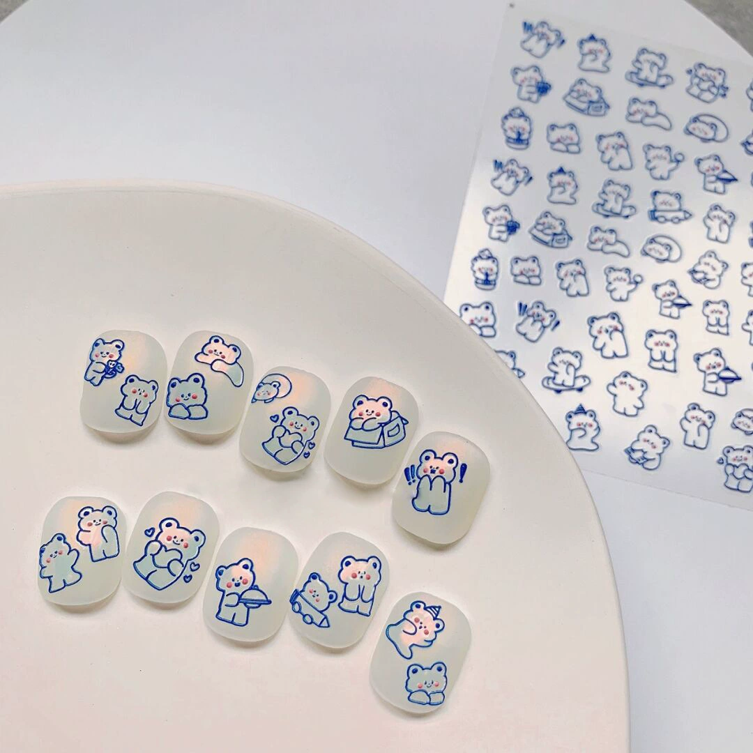 | nameOriginal | Nail art stickers Klein blue bear and rabbit embossed decals cute cartoon girl heart nail ornaments small pattern |