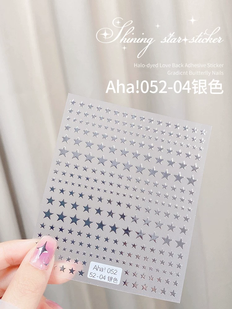 Nail art stickers new internet celebrity 3d star nail decals ins hot gold silver black and white stars moon love accessories