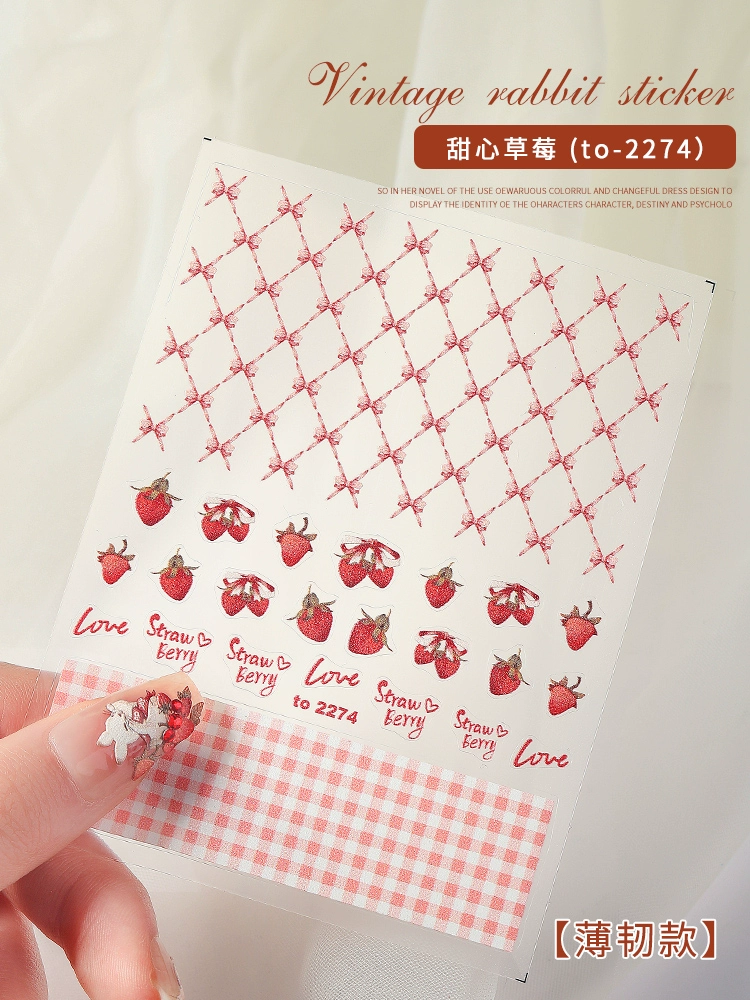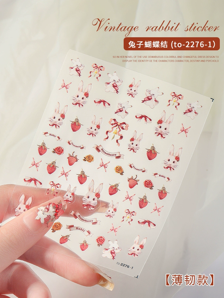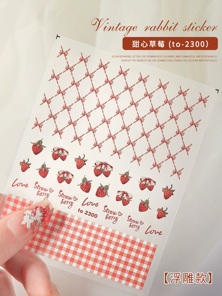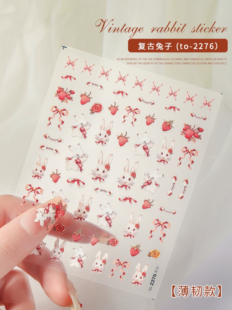 | nameOriginal | Nail Art Stickers Rococo Rabbit Internet Celebrity New Year Embossed Cute Gentle Retro Strawberry Nail Decoration Girl Style |