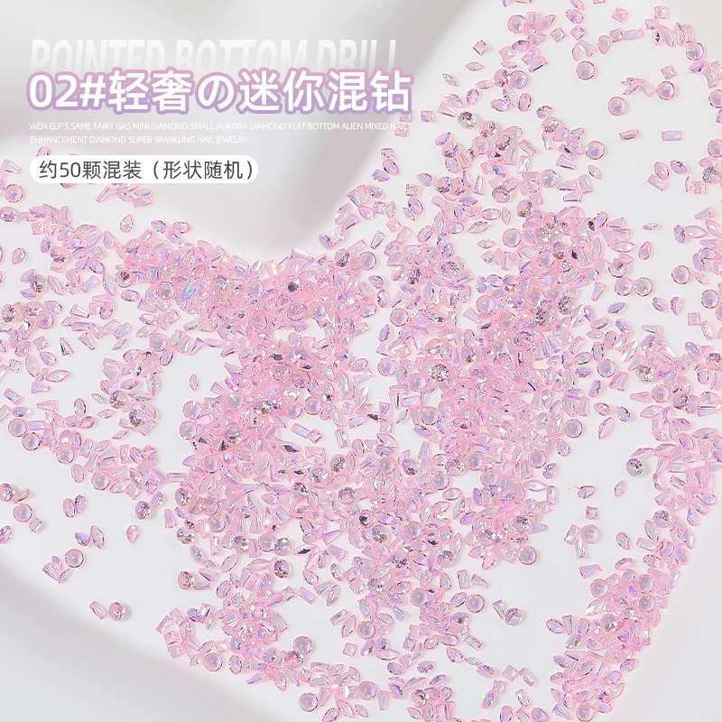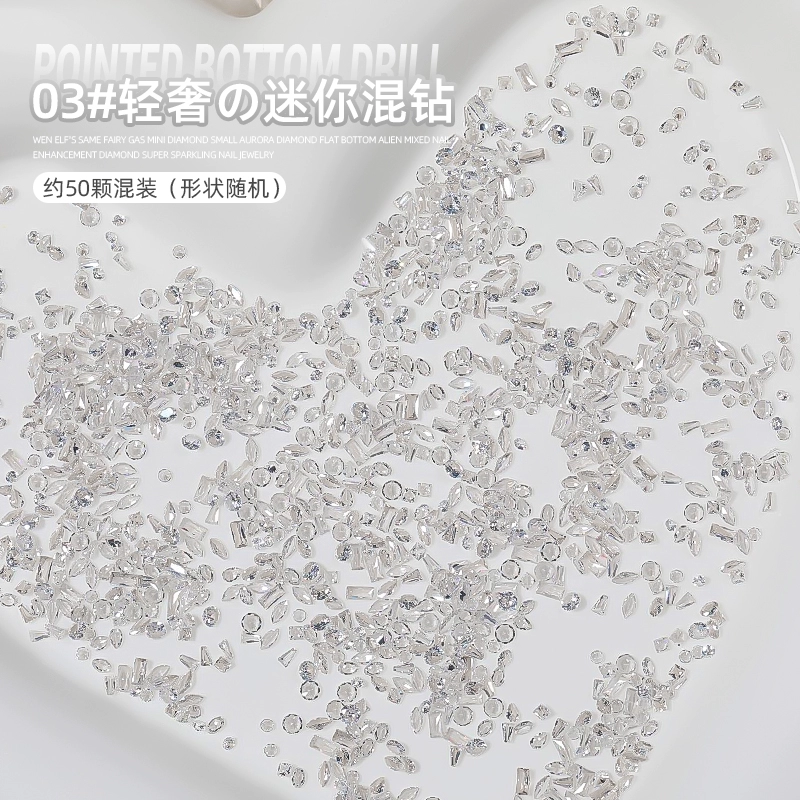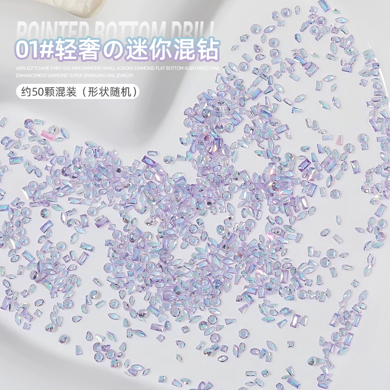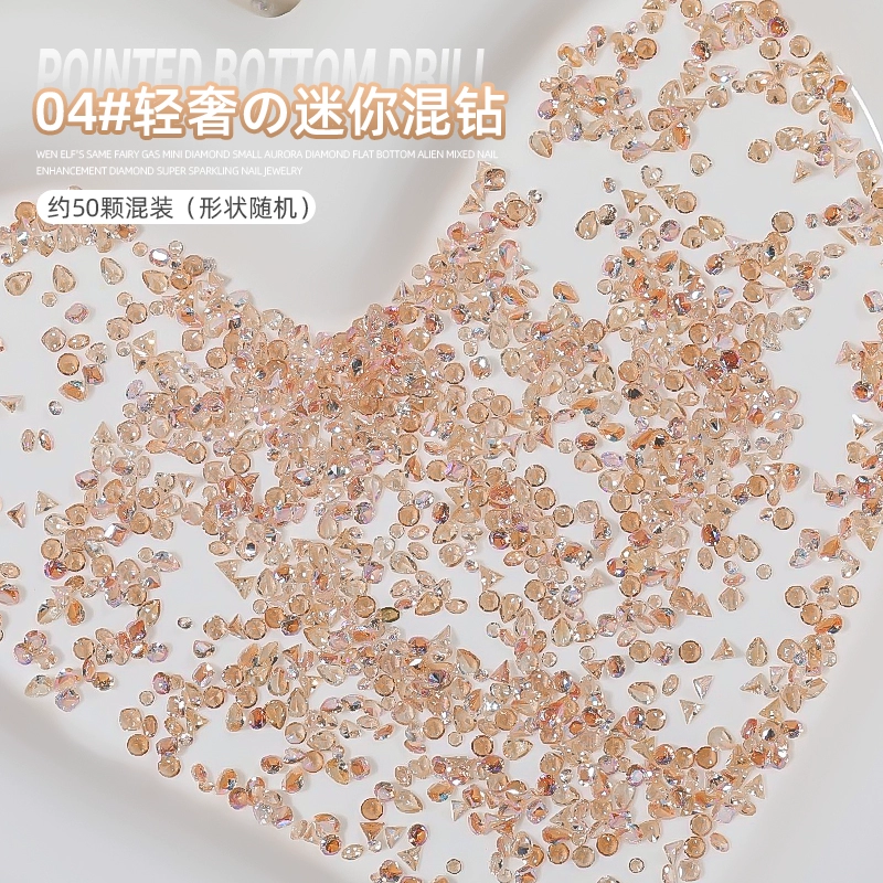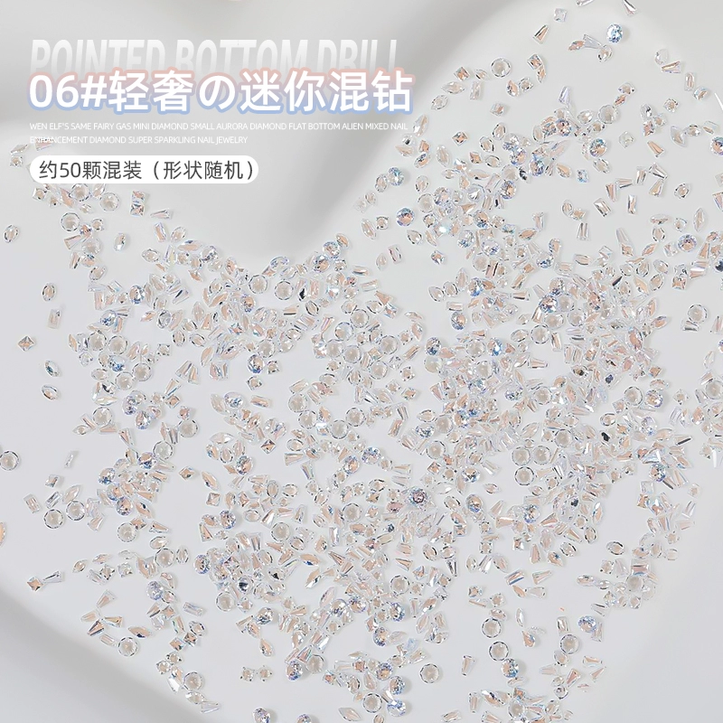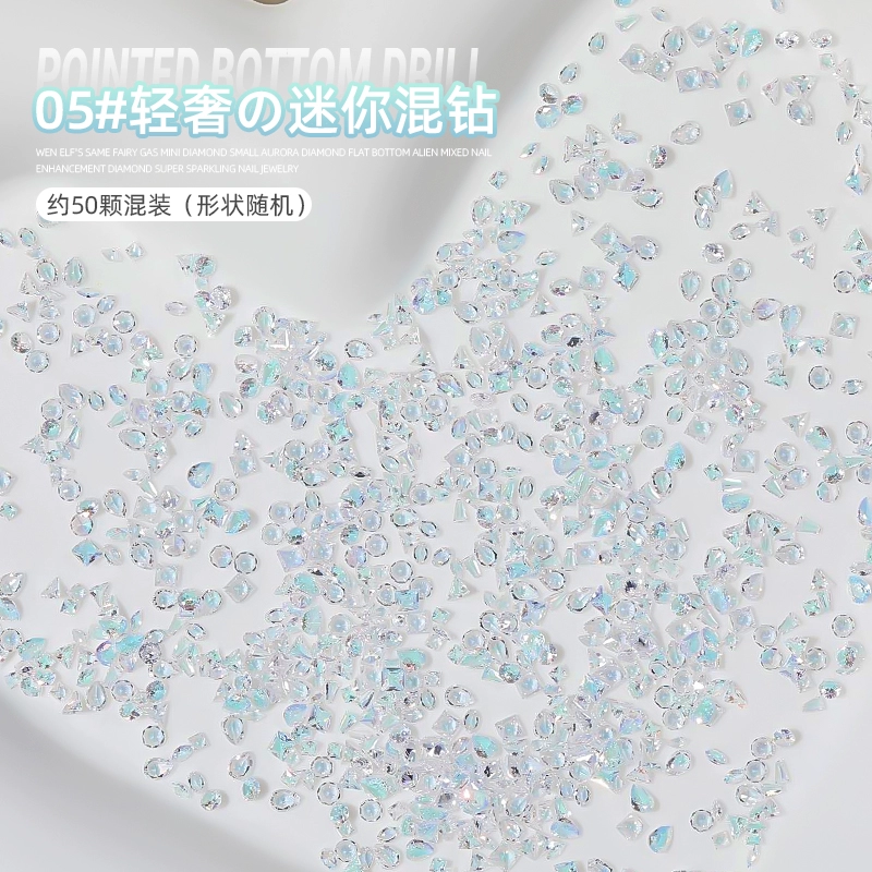 Nail art tip bottom diamond Internet celebrity K9 mini transparent mixed 2024 new style explosive colorful special-shaped diamond nail decorations