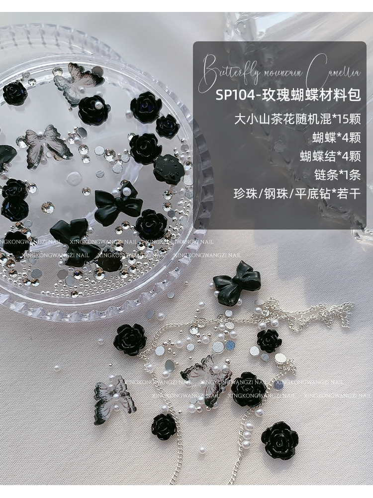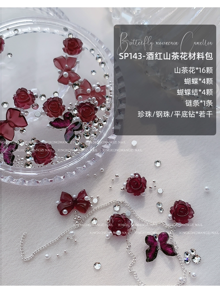 | nameOriginal | Nail art two-color camellia jewelry Internet celebrity hot style retro dark night rose flower gradient resin nail accessories |
