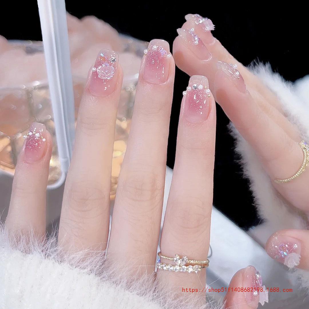 Nail Art Wear 2024 Internet Popular New Style White Nail Pieces Camellia Mid-length Nail Pieces Fake Nail Stickers