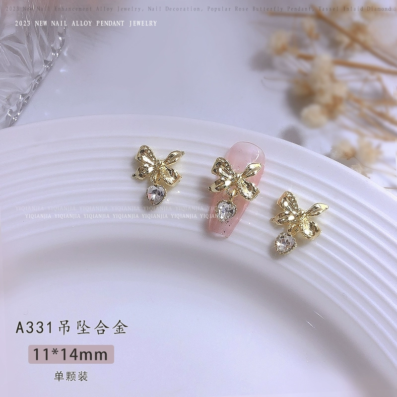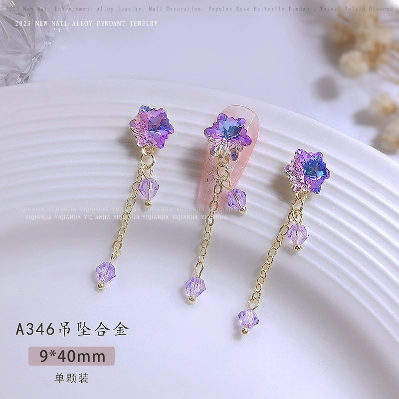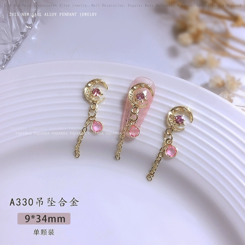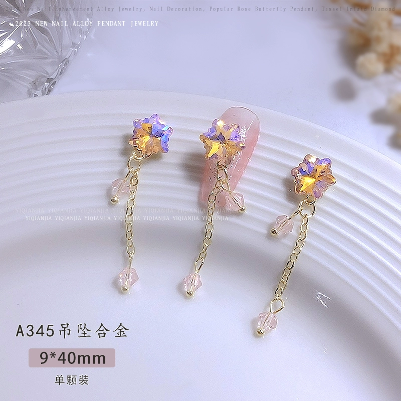 | nameOriginal | Nail decoration butterfly tassel jewelry chain pendant pearl metal alloy high color retention ice moon nail art six star diamond |