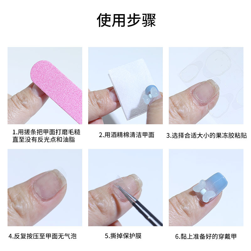 | nameOriginal | Nail jelly glue wholesale double-sided adhesive invisible wear nail patch transparent high viscosity yellow glue stick detachable 24 stickers |