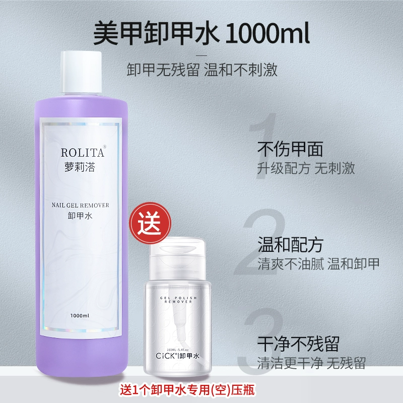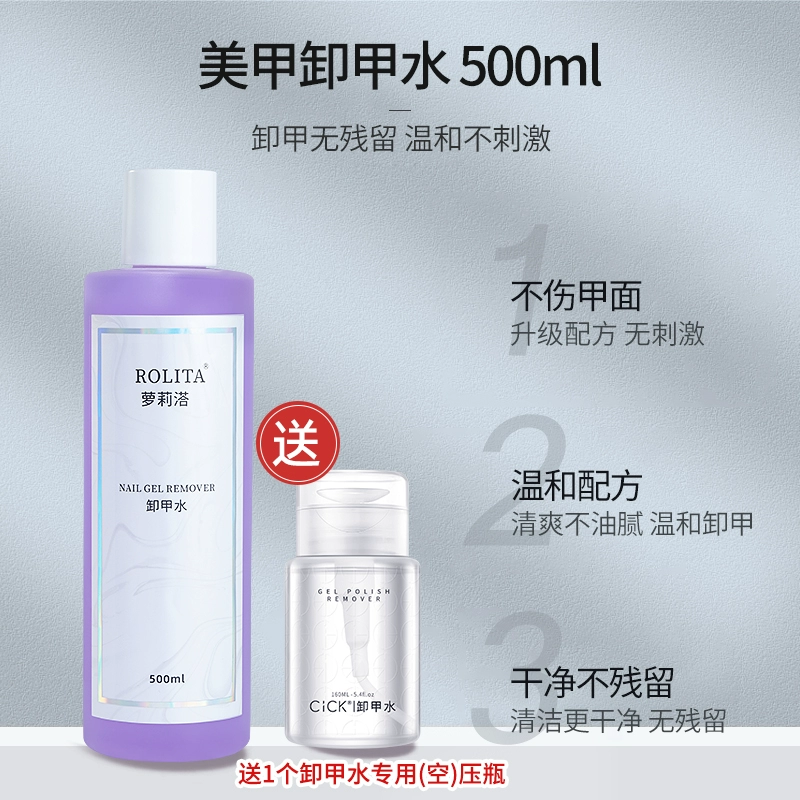 | nameOriginal | Nail manicure remover water clean water does not hurt nails powerful nail polish remover nail salon special press bottle large bottle of water agent |
