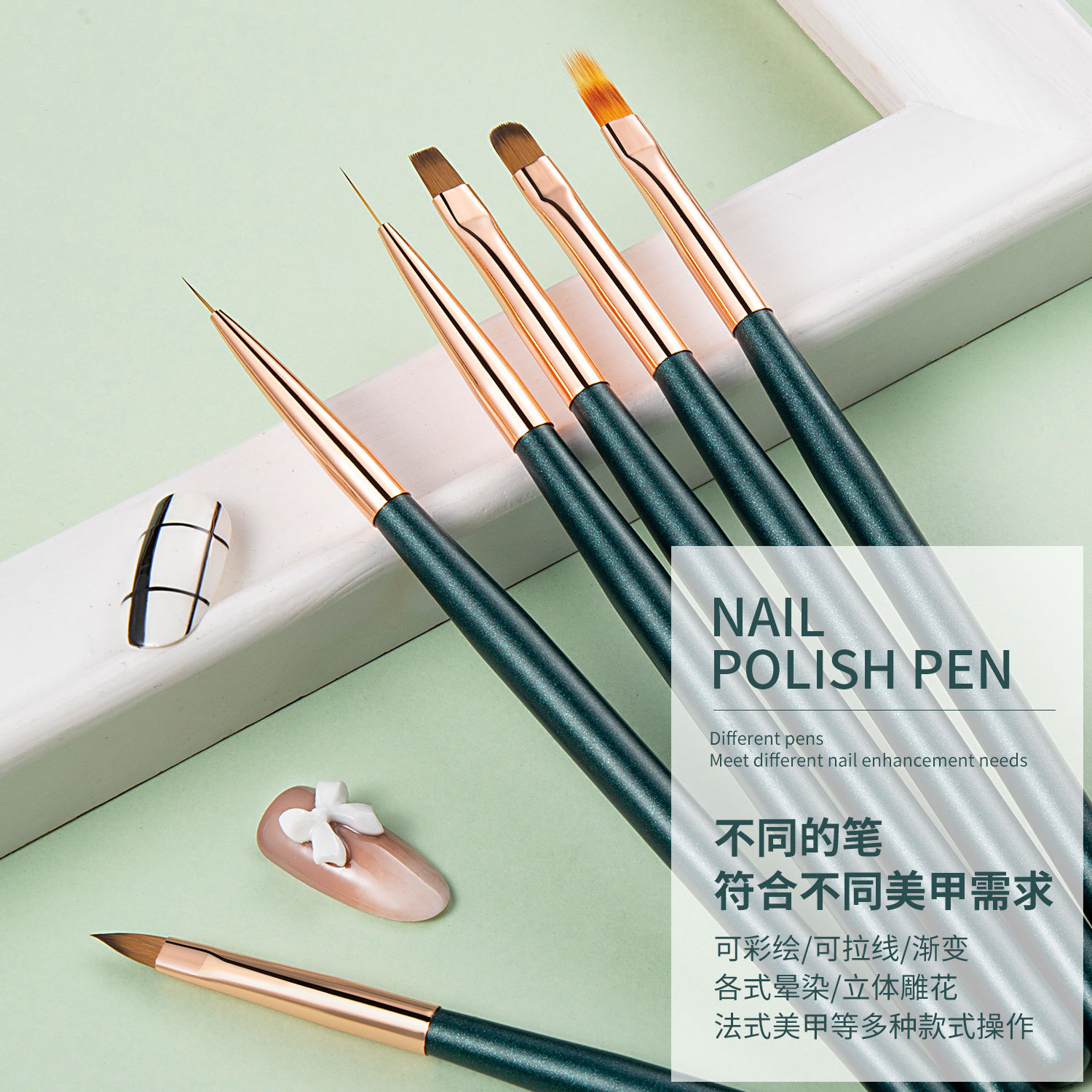 | nameOriginal | Nail pen set round head phototherapy pen color drawing pen pull line Pen crystal pen color painting pen wholesale wooden pole nail tools |