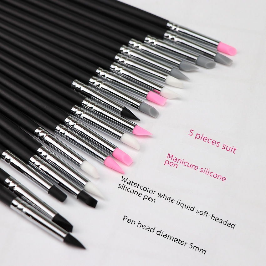 | nameOriginal | Nail soft head pen embossing pen nail rubber head pen nail pen clay tool repair silicone pen 5 sets |