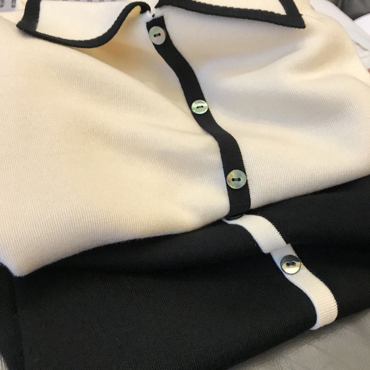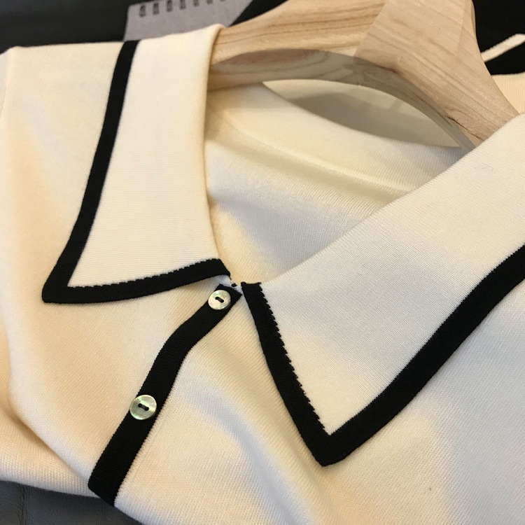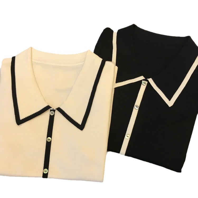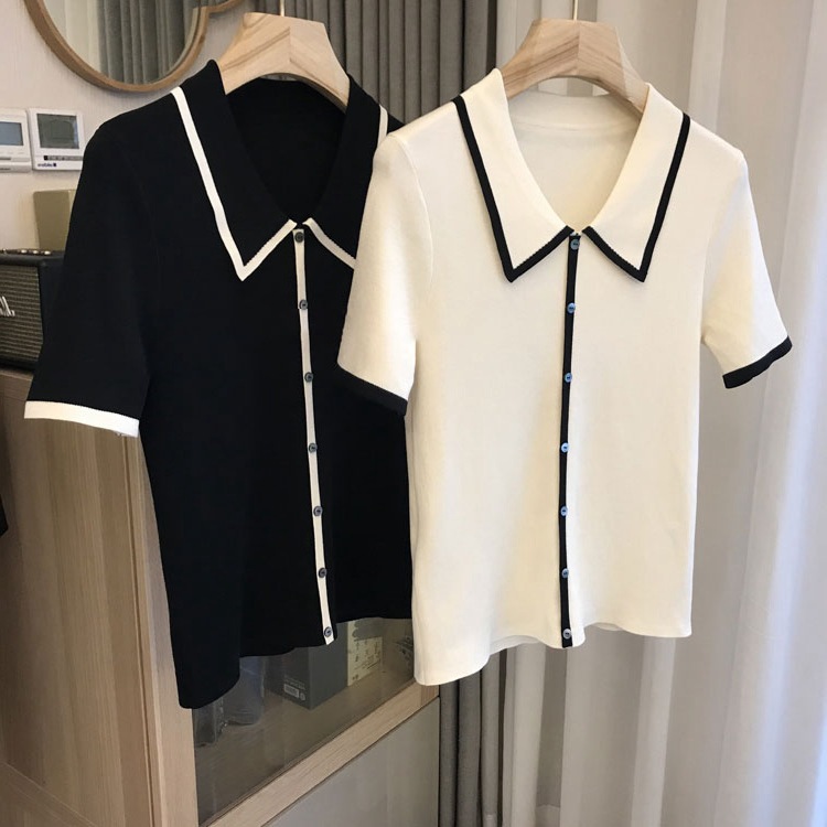 | nameOriginal | Naked sense of wearing experience! 2024 Summer New Exquisite Shell Buckle Contrast Color Fragrant Lapel Knitted Short-sleeved T-shirt for Women |