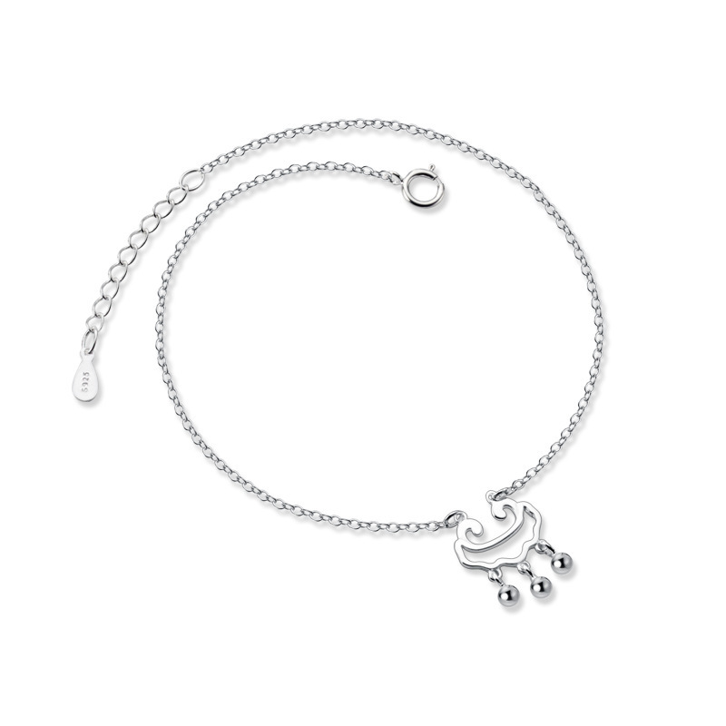 Nalan S925 Silver anklet Women’s Long Life Lock Small Fresh Hollow Cute Bell Ethnic Style Foot Jewelry S1621