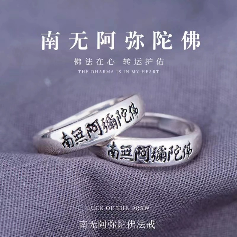Namo Amitabha S925 sterling silver six-character mantra ring for men and women retro couple ring opening adjustable