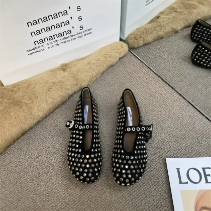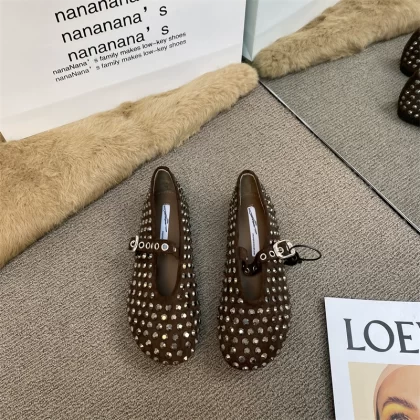 | nameOriginal | nana rivet flat comfortable ballet dancing shoes with rhinestones |