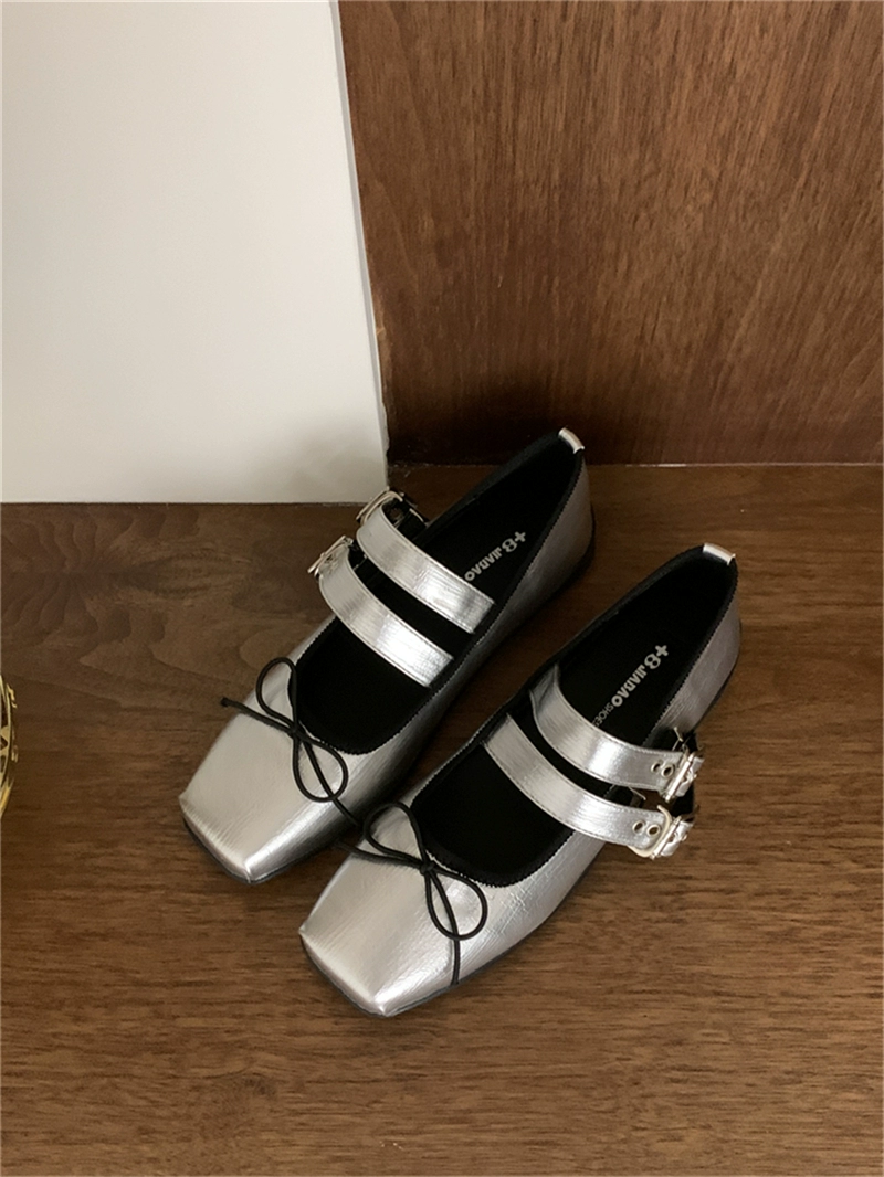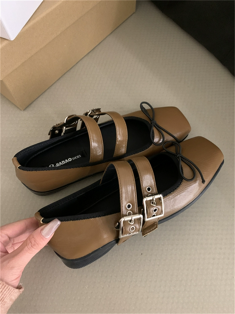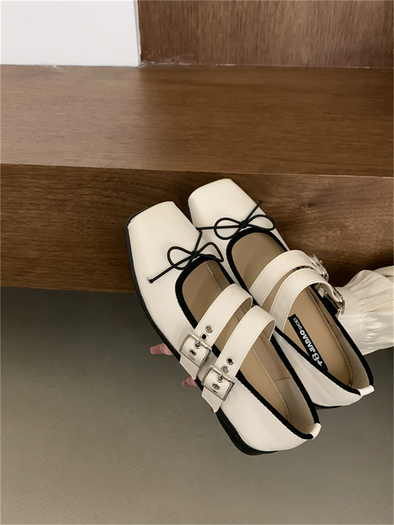 | nameOriginal | nana square toe bow shallow low heel French shoes |