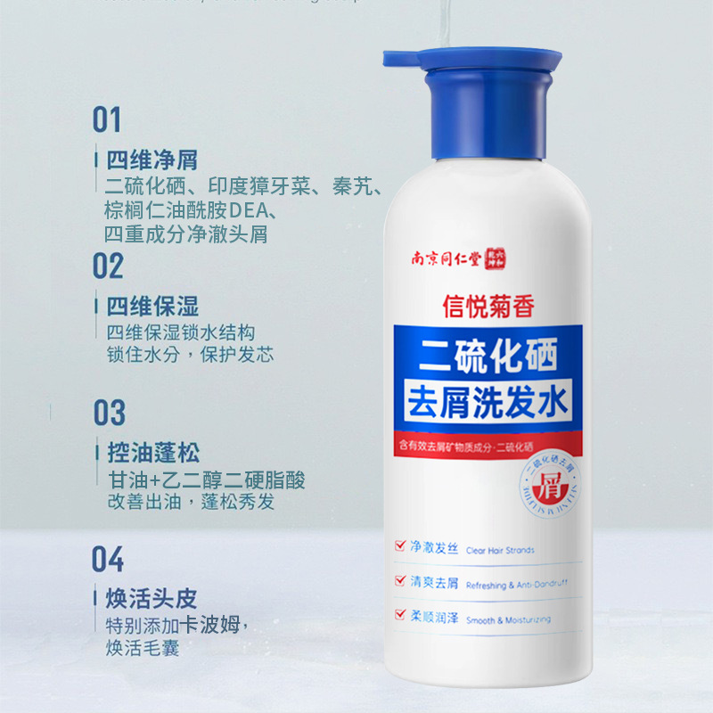 Nanjing Tongrentang Selenium Sulfide Anti-dandruff Shampoo Tax Improving Hair Follicle Anti-dandruff Fluffy Oil Control Shampoo Wholesale
