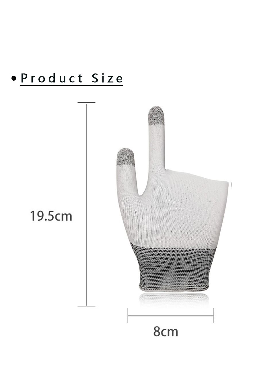 Upgrade your competitive gaming with this must-have artifact – a pair of mobile finger sleeves. Suitable for both adults and children, these sleeves offer better fit and elasticity than traditional finger cots. Made from a comfortable compressive fiber cotton material, they can be worn all day thanks to the high-quality blend of cotton fiber and spandex. The finger part is made from top-scale silver fiber, which is superconductive and highly sensitive. The 16-pin seamless dense weaving technology ensures the gloves are breathable and absorb sweat, making them perfect for sweaty fingers. They also protect you from the cold while providing an extreme gaming experience. These game gloves are multi-use and support all mobile/tablet PC gaming on iPhone and Android phones, as well as other racing games. With super anti-sweat, responsive, and faster speed, these gloves reduce resistance caused by fast sliding screens, improve sensitivity, and provide clear and continuous touch screen response.