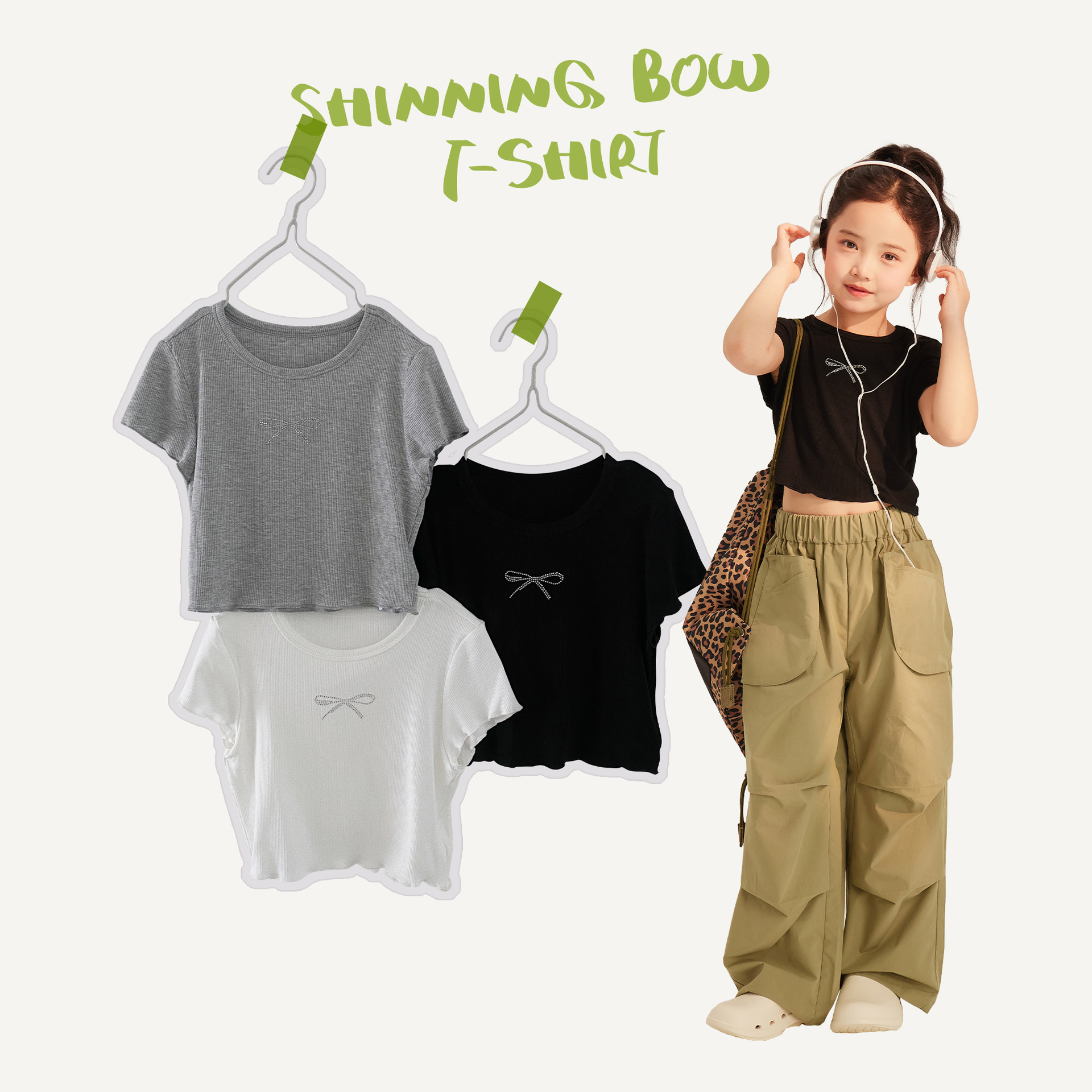 | nameOriginal | nanokids 24 summer new three-color hot drilling short T black and white gray girls short T-shirt children's top bow |