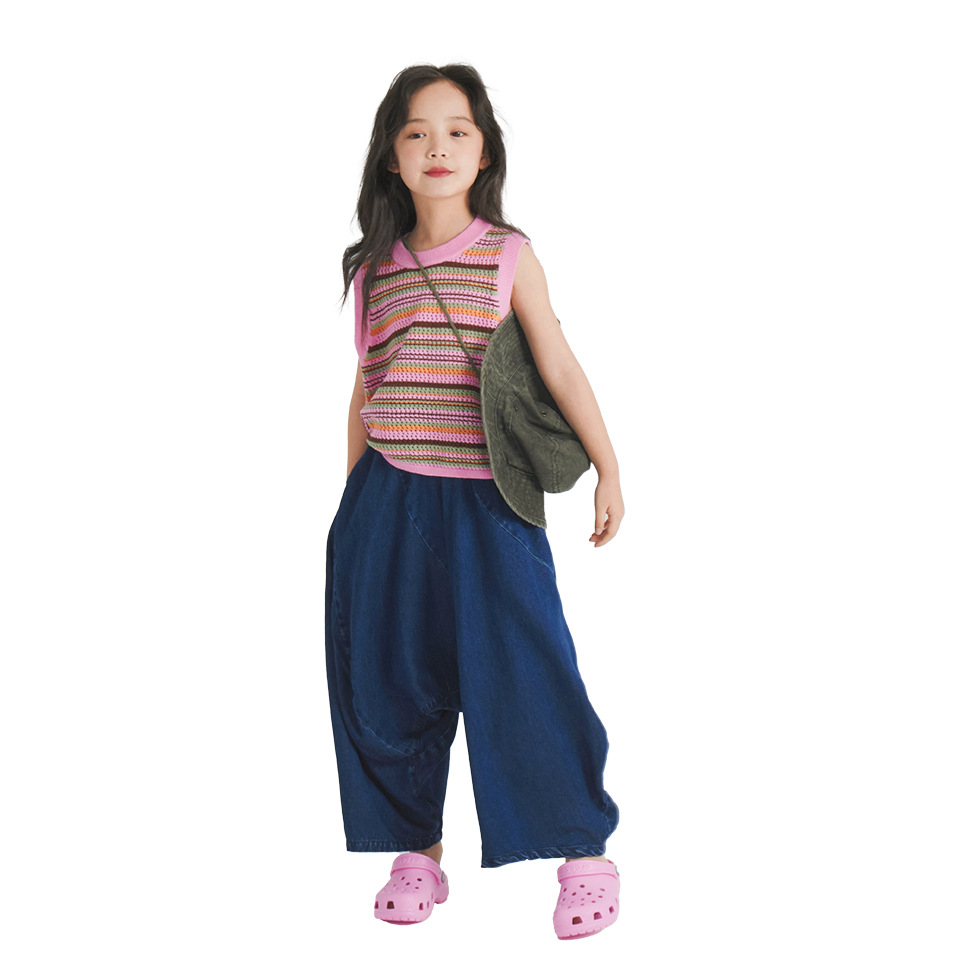 nanokids 24 Years Summer Children's Wear Knitted Vest Irregular Jeans