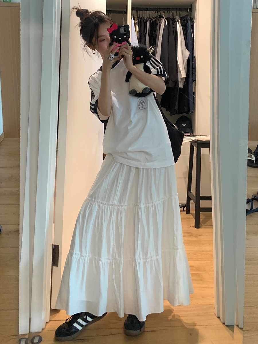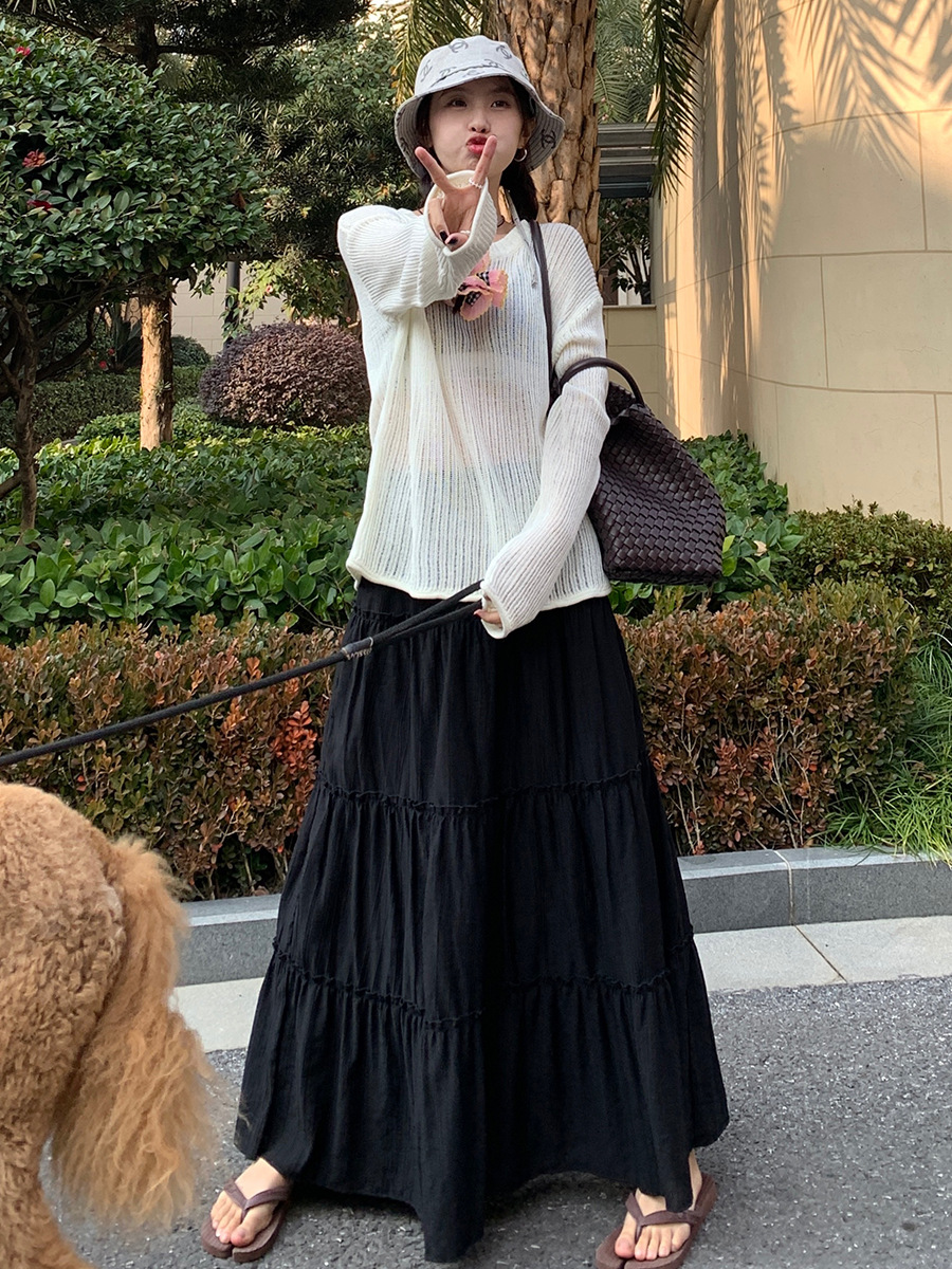| nameOriginal | Nantao Korean style gentle pleated skirt women's 2024 spring and summer elastic high waist cross-body mid-length A- line cake skirt |