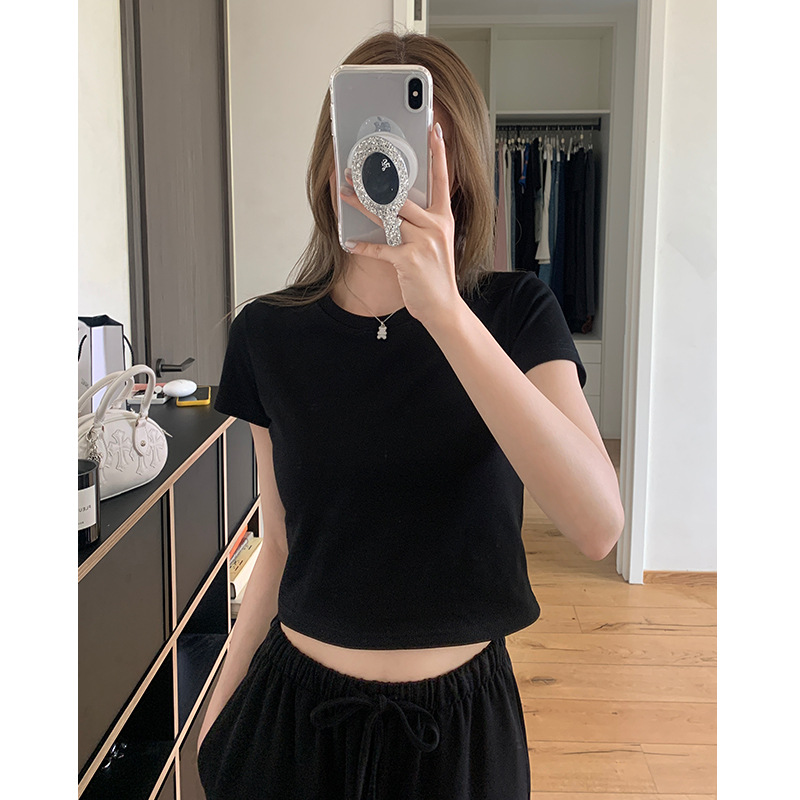 | nameOriginal | Nantao Spice Girls Shoulder Solid Color Short-sleeved T-shirt Women's 2024 Summer New Slim-fit Slimming All-match Cropped Top |