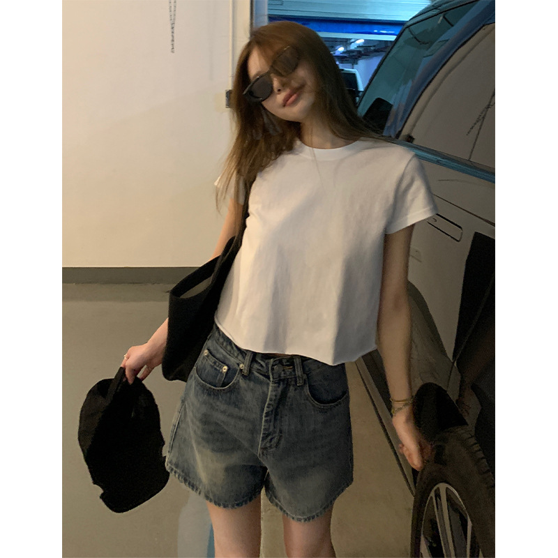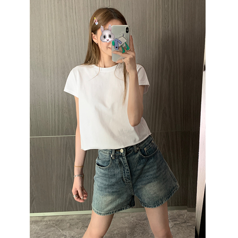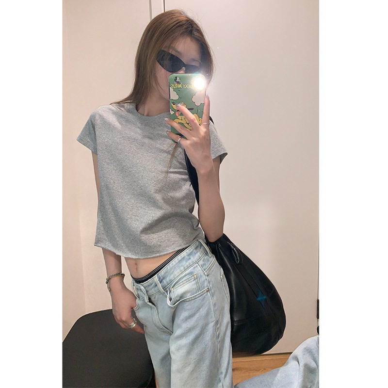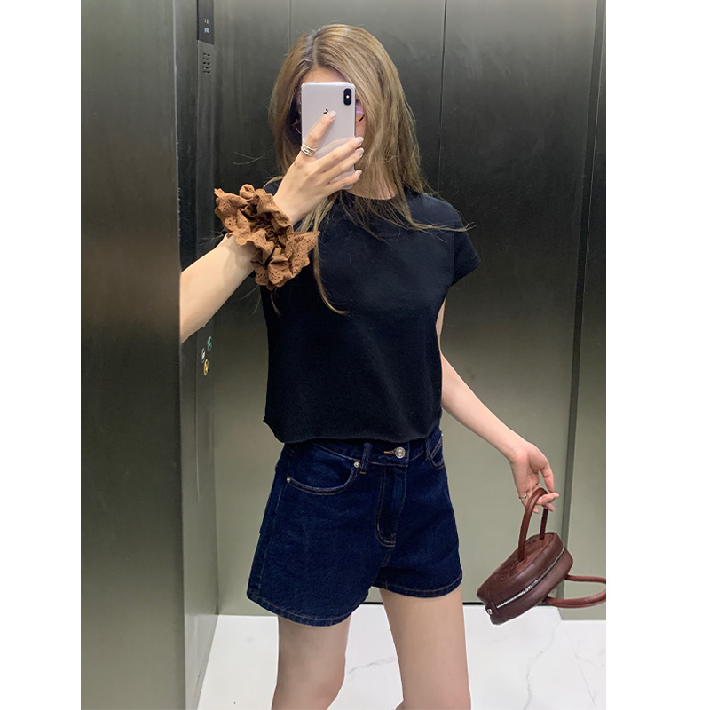 | nameOriginal | Nantao Sweet and Spicy Pure Crewneck Curl Short-sleeved T-shirt Women's 2024 Summer Design Sense Slim-fit All-match Shoulder Top |